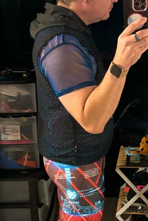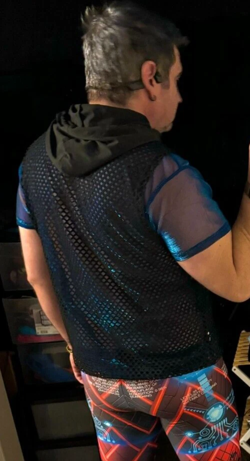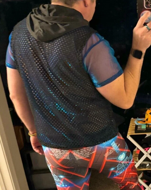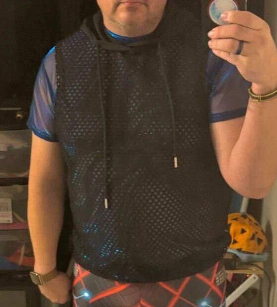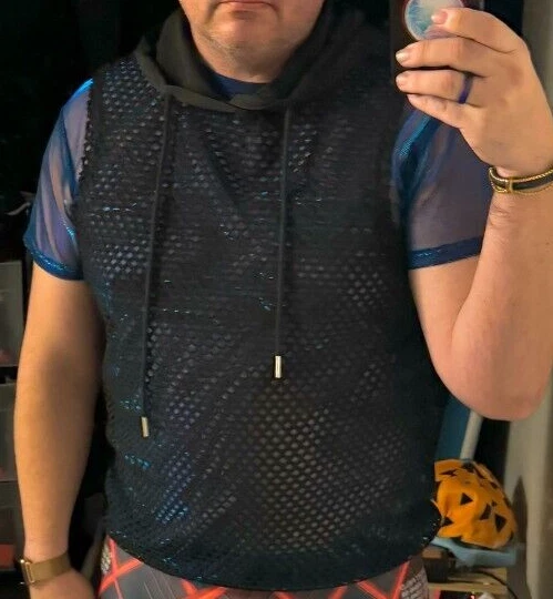 Make it a perfect match with Digital Menace leggings: https://www.ebay.com/itm/356266514433 The sleeveless hoodie is sheer, the t-shirt is sheer, but when you put two sheers together, they make a combo that isn't so inappropriate to wear around all day and in Target and the grocery store. I love how the light bounces off the blue shirt and matches the leggings "light" perfectly! Price includes the materials I have to purchase to DO the shipping, and the time I spend packing it up and hauling it to the drop off. This also speaks nothing of the hours I spent trying to find all of the best items in menswear around the world; stores, 2nd hand shops, buying n hoping the size will be right, and every obscure website you can imagine; many from Japan, Ukraine, UK, France, Greece, Portugal, Spain, Poland, Middle East....etc. View the model's detailed specs below to get a perfect idea of how it will fit on you, or as the Spanish would said, "como te quedará." That means "how it'll fit you." Yes, that's right, I'm gonna shove Spanish down your throat, too, and maybe you just might learn something. Like a Dora the Fashionista or something. Which reminds me, 10% or more of my sales go to helping women in Colombia living in poverty; mostly single mothers. Model is 5'10". 34/36x30 and usually wears L. Thighs are a very muscular 26" at the thickest, arms are 14", and bust is 42" You are a guy that likes to dress comfortable and feel sexy? You are far from unusua l, and you?ve found your home. Every guy likes a certain wear, fit, color, material.. and some like me can appreciate them all! DEFINITELY follow my store. I have pieces ranging from masculine to femme from all over the world. I?m not brand biased, only the sexiest and most fun stuff for MEN. I?ve done the searching and fitting for you, so you know it will fit you nice when you get it; regardless what country?s sizing it originated from. I only list AMERICAN sizes, and if it says L and fits like an M, I?ll tell you so; no more guessing. Some items, possibly were made w/ Female in mind, but the reality is that it is just fabric sewn together, and everything else is just a social construct. So I take pictures in it so you can decide; does this clump of fabric look good on a guy or not? I am the World?s premier authority on sexy menswear. I have hundreds of items not yet posted, so message me if you seek anything in particular; you?ve got a hookup now; ME!!! P.S. All of my stuff is priced at about 35% of what I could ask for, but I prefer a quick sale and to let you have more items! While I entertain offers, please keep in mind that others are "watching" the items and that they are already priced aggressive. If there are any special requests or outside the box deals, I'm open to them. P.P.S. Some believe that clothes are a lot like a baseball glove; they can sometimes be better if broken in a bit. Almost everything I post has only been tried on for the photos, or maybe worn just a couple of times. If you would like me to break it in, let me know; if you smell what I?m stepping in?