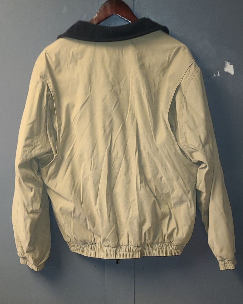 Elevate your wardrobe with this classic London Fog pea coat in a stylish beige/tan color with a black collar. The coat is made of durable polyester and features a solid pattern, zip and snap closure. It's a perfect addition to your collection that you can wear on various occasions like travel, casual outings, and outdoor activities such as walking and golf. This jacket, with a chest size of 50 inches, sleeve of 25, and a jacket/coat length of 28 inches, fits regularly and is a great fit for men of all sizes. The coat is perfect for the winter, fall, and spring seasons and is a great addition to your retro and classic themed wardrobe.
