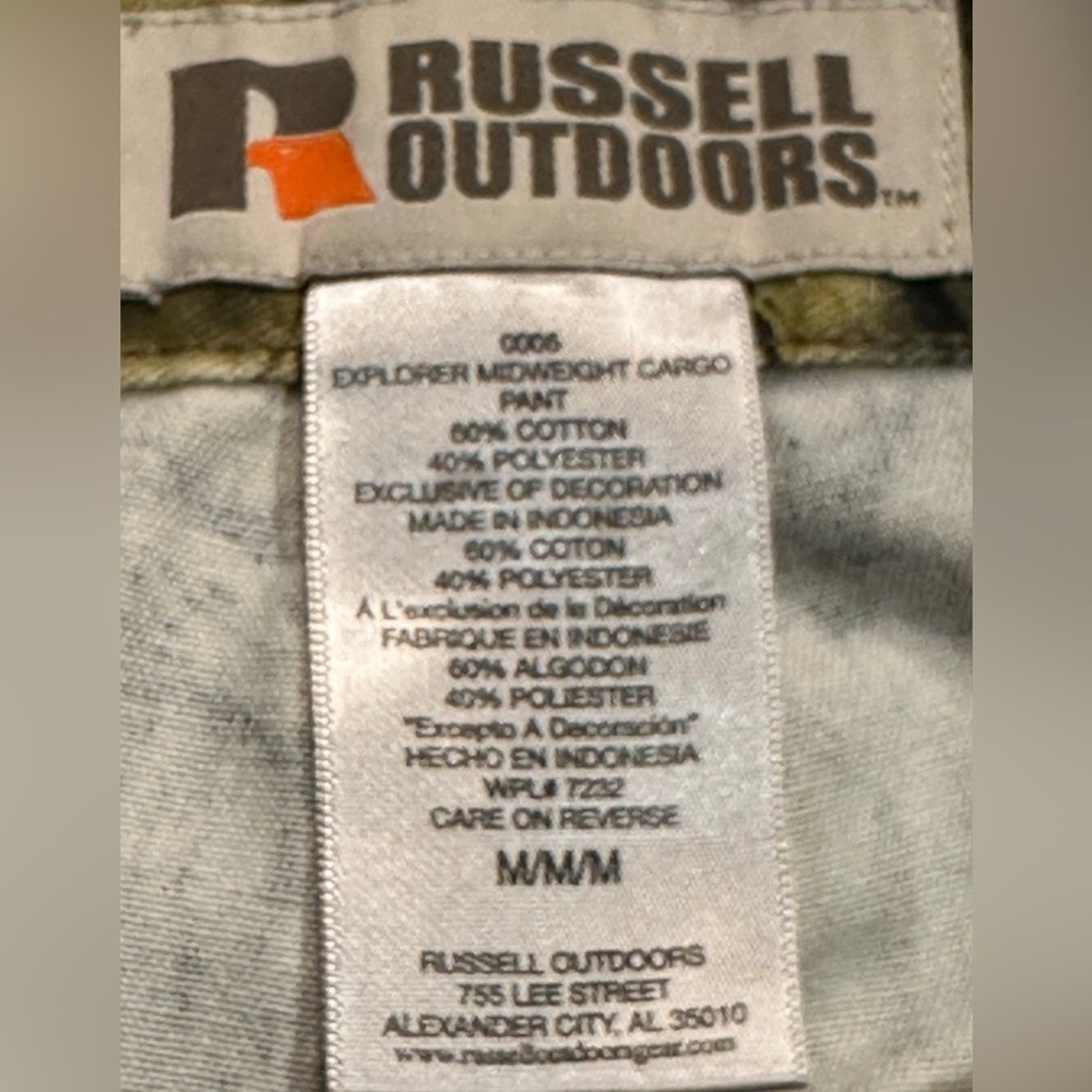 This is a great pair of men’s size medium or 35 x 30 1/2 camo pants with adjustable waist. Pants are an excellent gently used condition. Cotton polyester blend.