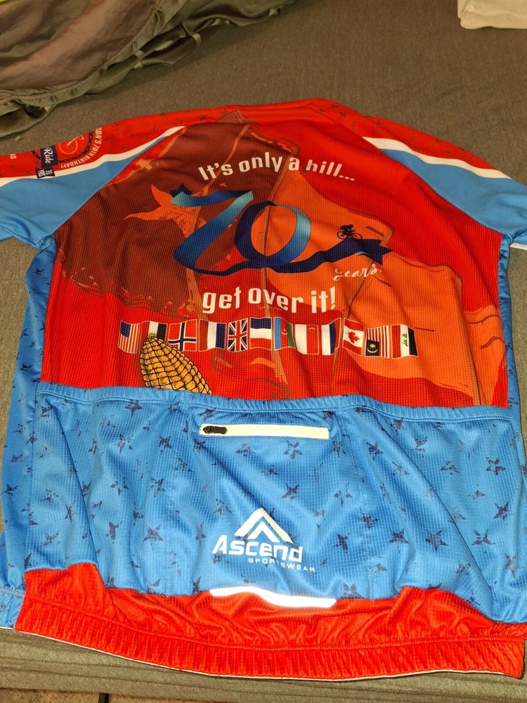 This product is a set of two men's medium-sized bicycle jerseys, designed for casual cycling activities. The jerseys are made from a medium fabric wash, suitable for regular use. They are branded for cycling and are specifically intended for men. The size of the jerseys is large, providing a comfortable fit for cycling enthusiasts. The jerseys are ideal for individuals engaging in cycling as a performance or leisure activity.