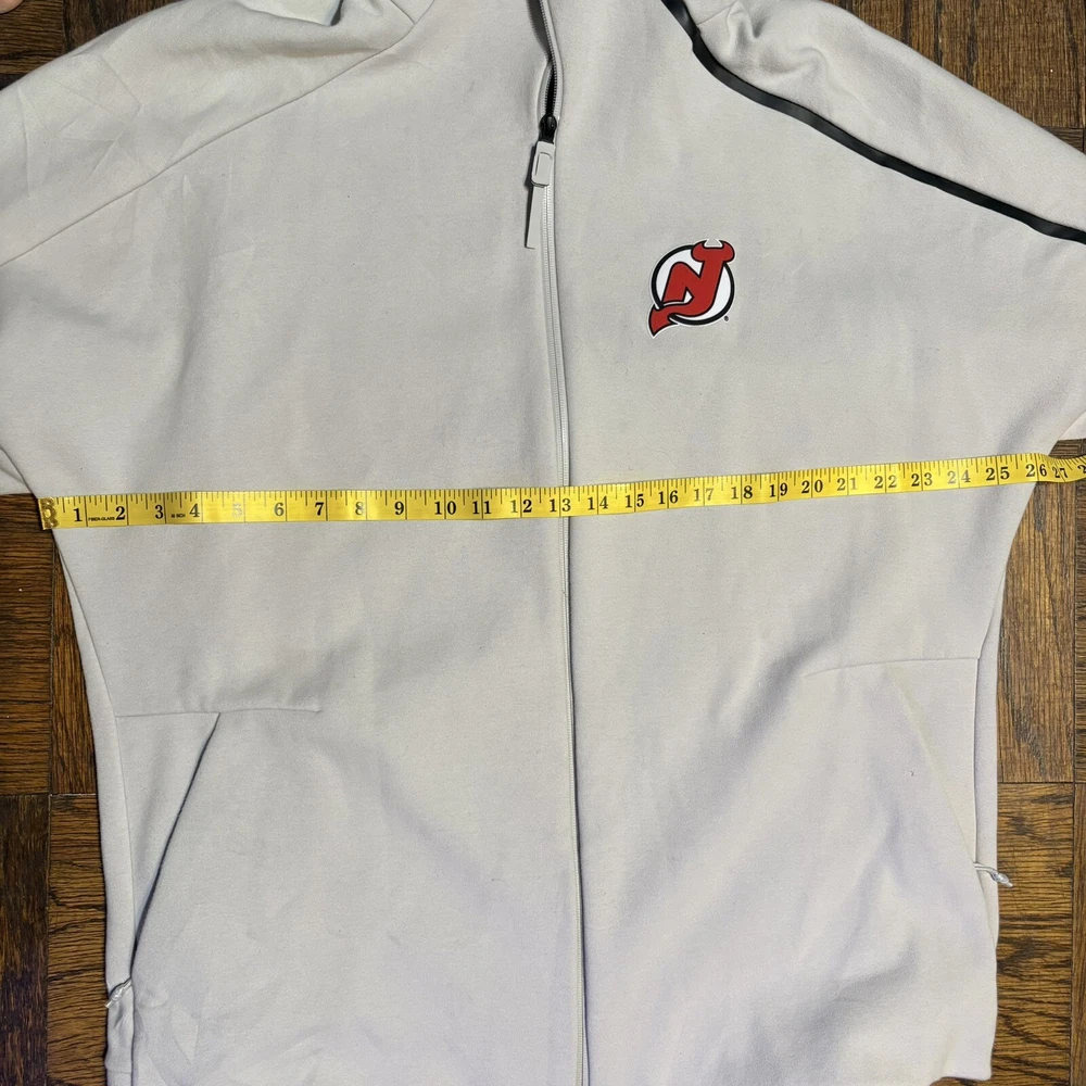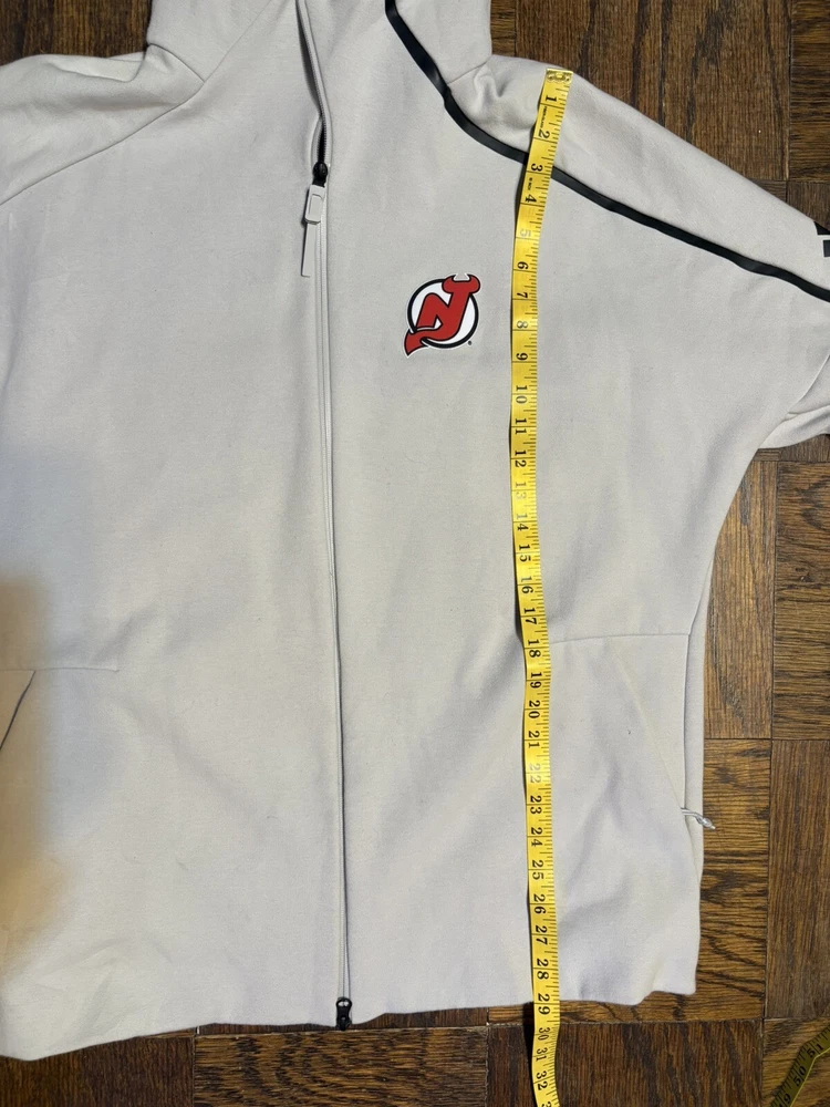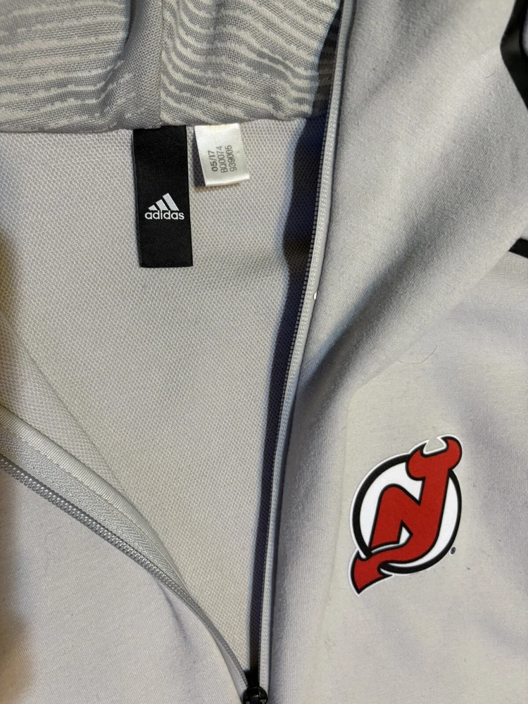 Men's New Jersey Devils NHL Adidas Gray Full-Zip Hooded Jacket Measures Size 2XL. There is a very light mark on the back barely worth mentioning (see pics). Approximate Measurements 26” pit to pit 29” shoulder to hem