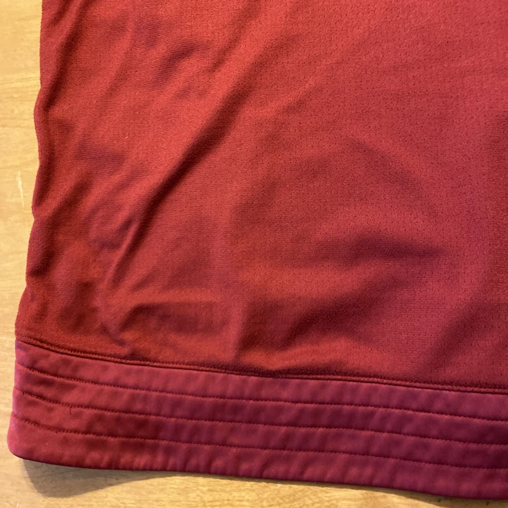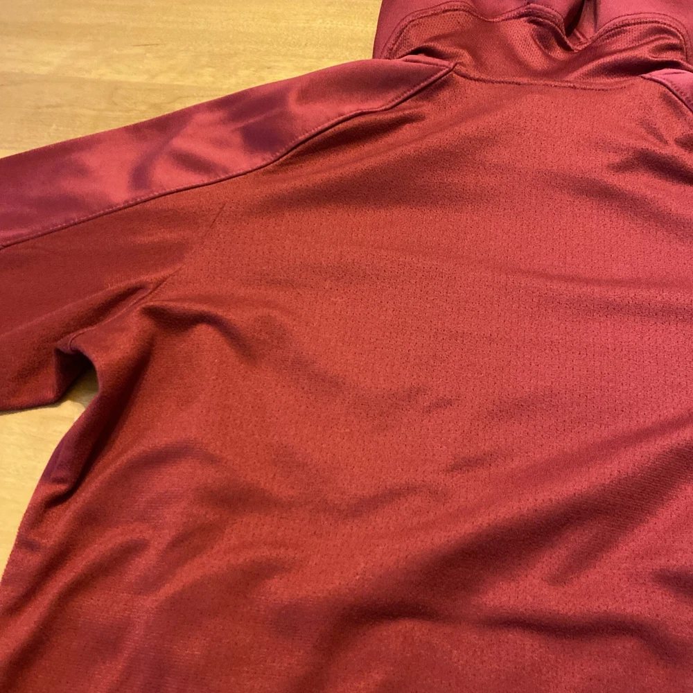 Show your support for the Iowa State Cyclones with this officially licensed Nike Dri Fit sweatshirt. Made for men, this red hoodie is perfect for basketball fans who want to stay comfortable and stylish. The size small sweatshirt features the Iowa State Cyclones team logo and is made with Nike's signature Dri Fit technology, keeping you cool and dry during intense games. Whether you're at the gym or cheering on your team at the arena, this sweatshirt is a must-have for any Iowa State Cyclones fan. This is a pre owned sweatshirt and looks big for a small please look over pictures and measurements