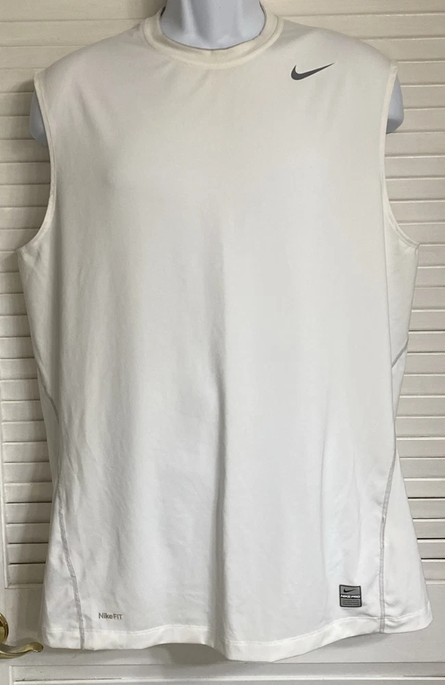 Men's Nike Pro Sleeveless Fitted Training Tee Size: XL White 84% Polyester / 16% Spandex