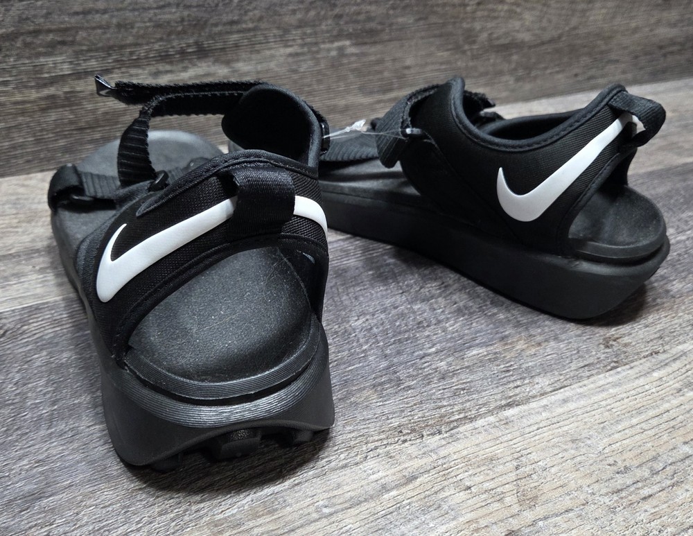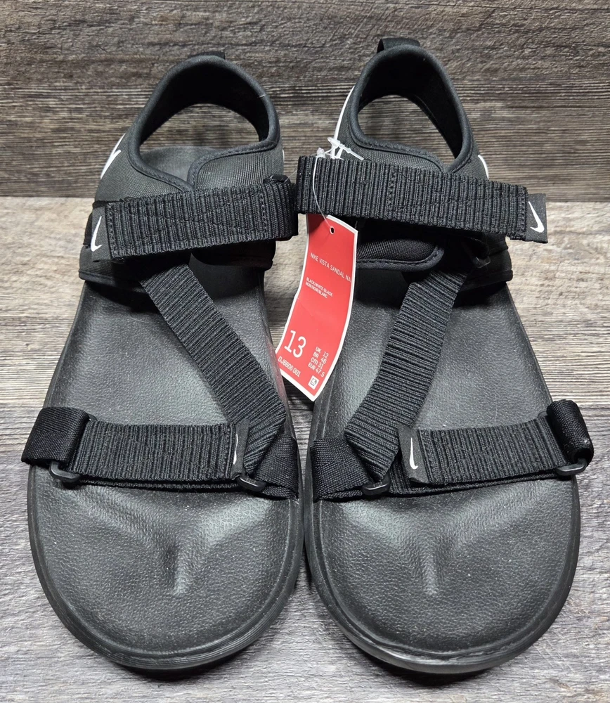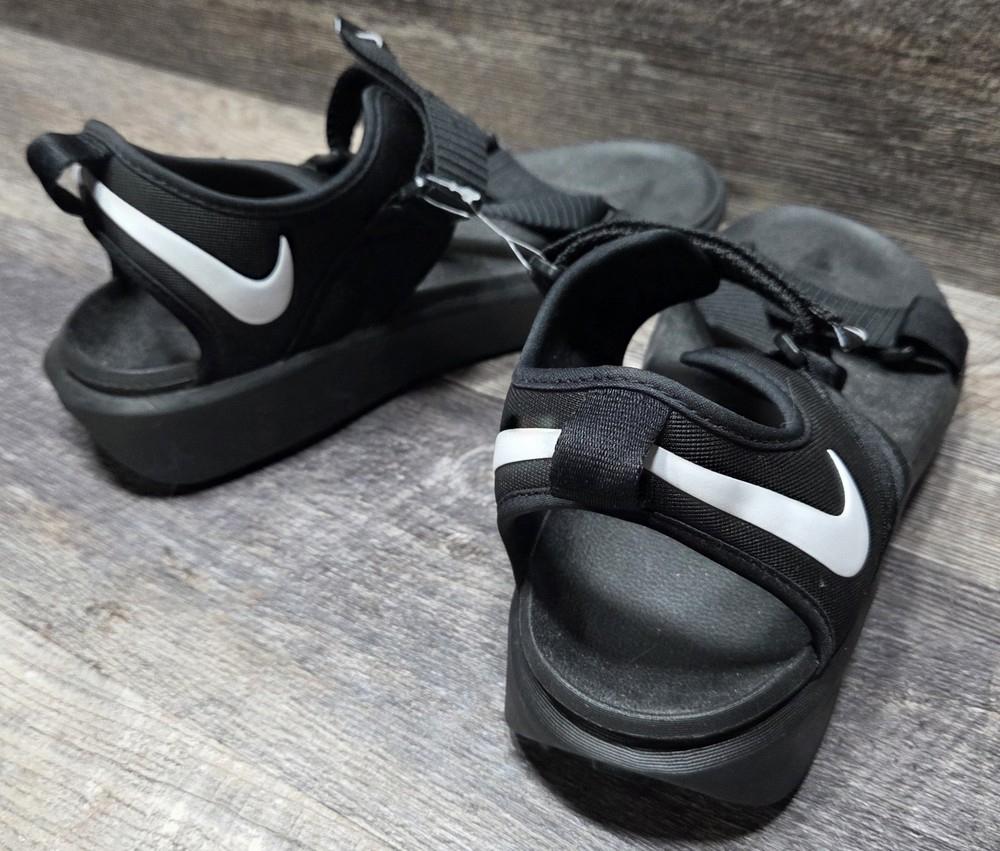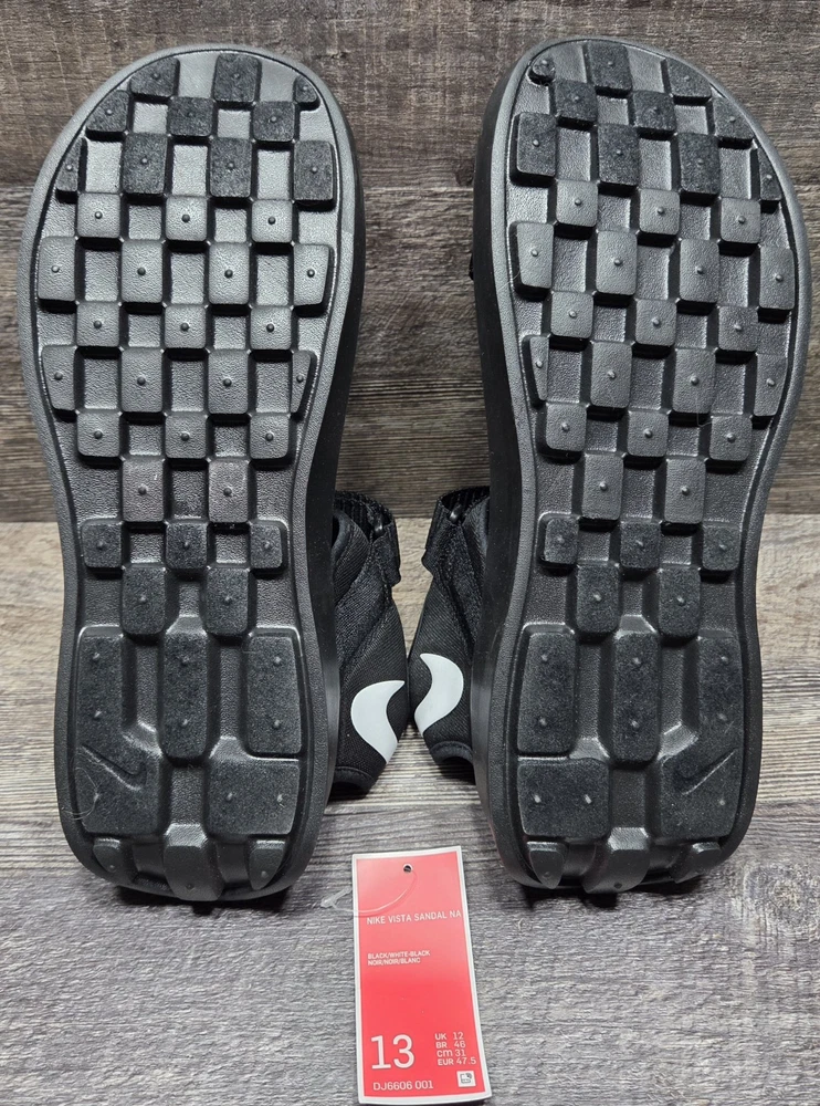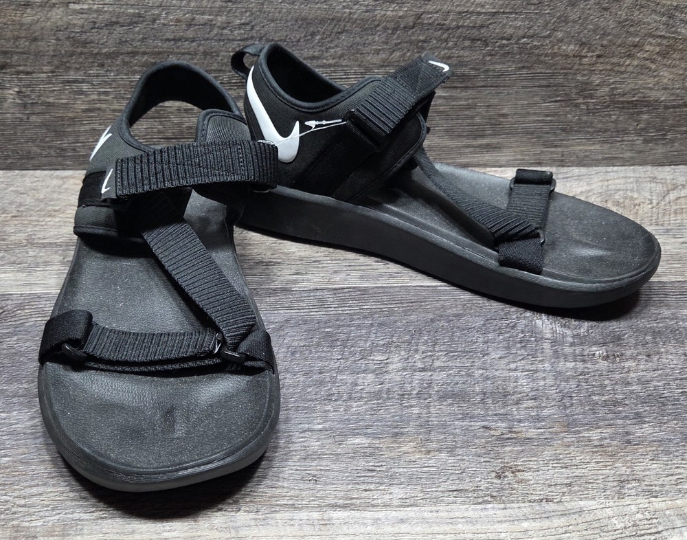 The Men's Nike Vista Casual Sandals in Black/White are designed for a comfortable and stylish addition to your casual or activewear wardrobe. With a hook & loop closure and cushioned sole, these sandals are perfect for travel or outdoor activities. Made with synthetic material and featuring Nike's iconic logo, these sandals are breathable and offer standard width for all-day comfort. Whether you're hitting the beach or the trails, these Nike sandals are a versatile and durable choice for the summer and spring seasons. New with tags