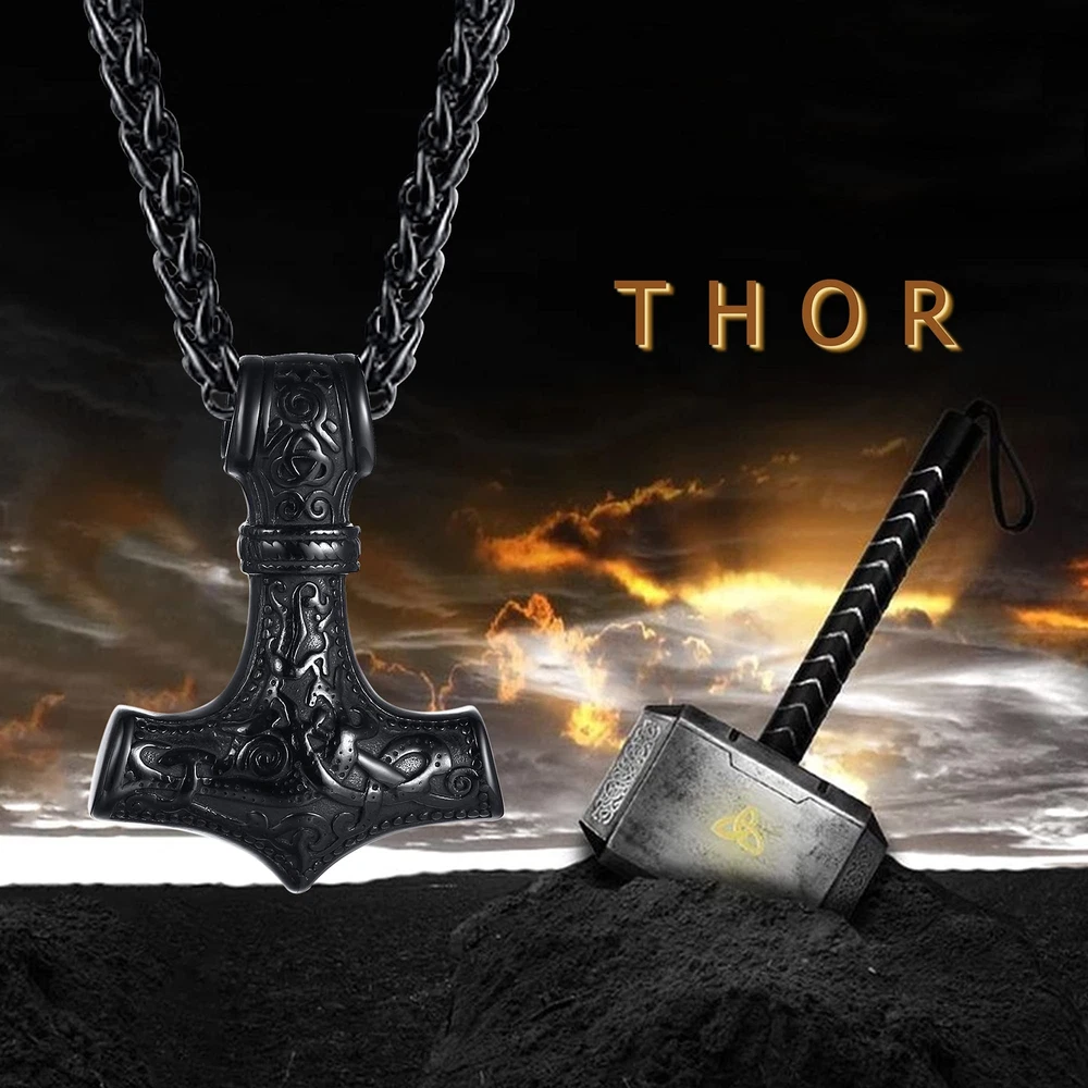 Men's Nordic Viking Thor's Hammer Pendant,Stainless Steel Vegvisir Mjolnir Mythology Talisman Necklace,Nordic Amulet Jewelry,Black DESIGN:Mjolnir hammer is one of the most powerful Norse symbols. Thor Hammer Necklace always renders wearers with strength to overcome hardship, bravery to encounter fear, and generosity to treat people around. DETAILS: * Style: Thor's Hammer Necklace/Norse Viking Jewelry * Color: Silver-tone,Black * Polish Finish * Size: Free 24" Chain PERFECT GIFT :This beautifully crafted Nordic Viking Mjolnir Thor Hammer Pendant Necklaces makes an ideal gift for men, perfect for any gift giving occasion, great gift for father's day, christmas, anniversary, thanksgiving day, valentine's day, graduation, birthday and casual days to your dad, husband, boyfriend, brother, friends or just as a surprise to remind that special one how much you care! MATERIAL: We choose stainless steel instead of alloy or brass. Because it's highly resisted to rust, corrosion and tarnishing. Durability and Fashionable. All makes it a top fashion accessory. PACKING&AFTER SALES: Comes with grey Velvet bag or Gift Box,Great for Gift giving!30-Days Money back guarantee,100% Secure shopping. Please rate 5 star if you are pleased with our product. Description Men's Nordic Viking Thor's Hammer Pendant,Stainless Steel Vegvisir Mjolnir Mythology Talisman Necklace,Nordic Amulet Jewelry ITEM DETAILS Condition: 100% brand new Lenght:24" Weight: 51.4g Color: Silver-tone,Black Material:Stainless Steel Package Included: 1pcs stainless steel necklace+a free jewelry bag More Details: as the pictures show Ideal Gift Unique gift for your dad,husband,boyfriend,lover,brother,groomsman etc, or a good treat for yourself. Daily wear,It's dainty can be worn every day. Perfect gift for birthday, anniversary,engagement,christmas,graduation, valentine's day, Wedding etc. CARE TIPS 1.Do not wear it to the pool, spa, or the beach.? 2.Please avoid the collision, so as to avoid surface scratches. 3.Remove when sleeping, exercising, or doing other physically strenuous activities. 4.Store your beloved jewelry in a cool dry place. PJ Jewelry has a broad range of fashion jewelry such as bracelets,necklaces,rings, earrings and other jewelry accessories. Hope our jewelry piece light up your outfit and life. Shipping We offer FREE shipping on all orders! We ship within Three business days of payment, usually sooner. We use a selection of shipping services such as UPS, FedEx, USPS etc. We only ship to the lower 48 states, no APO/FPO addresses or PO Boxes allowed. Local pickups and combined shipping options are not provided at this time. Return You can return a product for up to 30 days from the date you purchased it. Any product you return must be in the same condition you received it and in the original packaging. Please keep the receipt. Payment We accept payment by any of the following methods: PayPal Please pay as soon as possible after winning an auction, as that will allow us to post your item to you sooner! Feedback Customer satisfaction is very important to us. If you have any problem with your order, please contact us and we will do our best to make you satisfied. Contact Us If you have any queries, please contact us via ebay. We usually respond within 24 hours on weekdays. Please visit our eBay store to check out other items for sale! Thank you for shopping at our store.