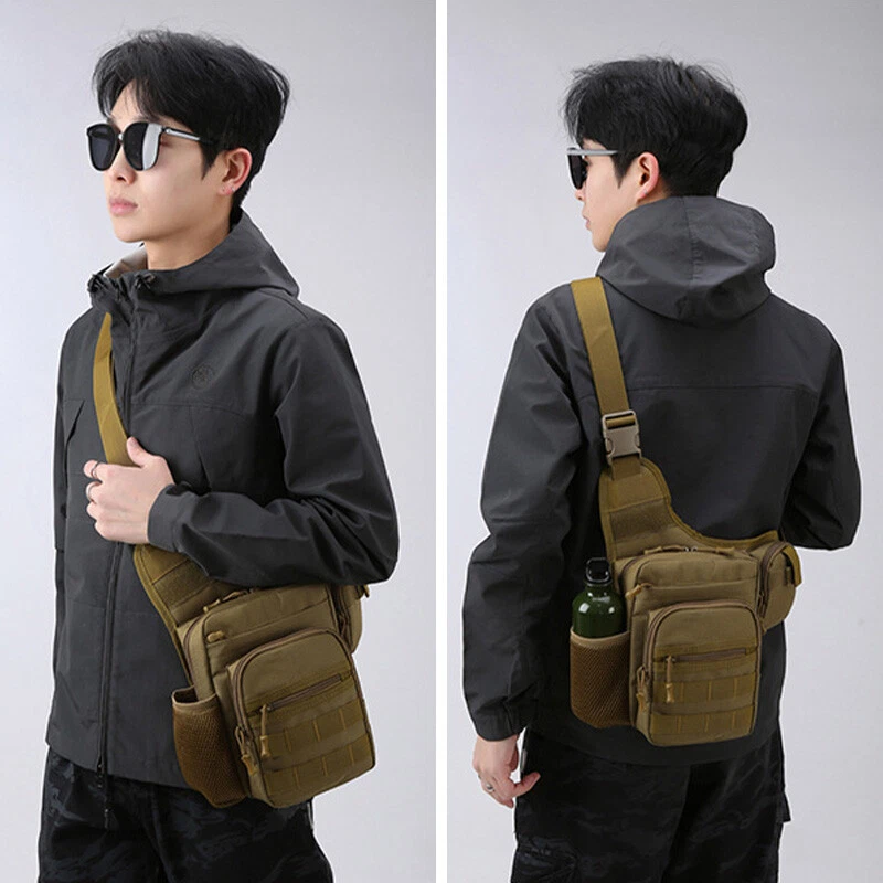 Description Size: 24*17*7CM Material: 600D Oxford Feature: Side mesh pocket for water bottle holder Occasion: Camping,Hiking,Trekking,Mountaineering,Climbing,Traveling,Trip,Tourist ,Gym,fitness,jogging,cycling,bicycle,running,riding School studnets etc. Carrying ways: Single shoulder backpack , chest bag,waist bag, corssbody bag, handbags