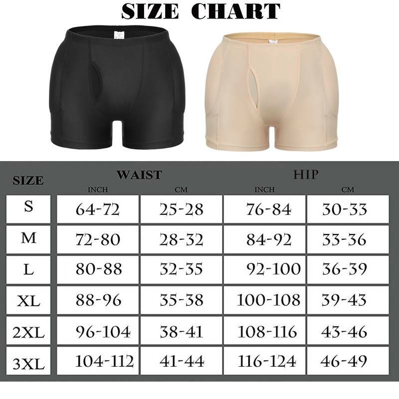 Style: Padded Briefs Color: Black & Beige Material: Premium Quality -- Nylon90%, Spandex10%. Size: S/M/L/XL/2XL/3XL(Please read our size chart) Removable Enhancing Pads Hip Briefs -- Pads are made by high density sofa sponge. The pads curve matches body shape and its surface is covered by fine yarn knitted fabric for protecting skin. 4 pads in total: 2 pads on the butt and other 2 pads on both sides of waists. Get a Peachy Hip -- Men padded briefs have a open hole in the front and with 4 detachable pads. Improve your hip curve as a whole and enhance your masculinity. And it is a invisible underwear: ultra-thin padded underwear, hidden under any clothing, secretly get a perfect ass. All occasions -- Suitable for any occasion in your life. Club, weddings, parties, work, reunions, conferences, ceremonies, meetings, cos-play, festival, holiday and any time you want to look more sexy. Delivery details We ship from our US warehouse within 24 hours , not overseas like many sellers. Orders are securely packaged to prevent damage. Any question please feel free to contact me,I'll try my best to help you,please don't leave Neutral/Negative Feedback before contact,thanks! Terms of sales 1.Any problem after receiving our goods,please contact us before leaving Neutral/Negative feedback.We promise to help you solve it asap,and make you feel satisfactory absolutely. 2.Please DO NOT leave negative feedback without asking for help. Please do not leave negative or neutral feedback if you haven't received item in 30 days, because we have mentioned the shipping time repeatedly. About us We maintain high standards of excellence and strive for 100% customer satisfaction! Feedback is very important to us. We request that you contact us BEFORE you give us neutral or negative feedback, so that we can address your concerns satisfactorily . It is impossible to address issues if we do not know about them! Any question please feel free to contact me,I'll try my best to help you,please don't leave Neutral/Negative Feedback before contact,thanks!