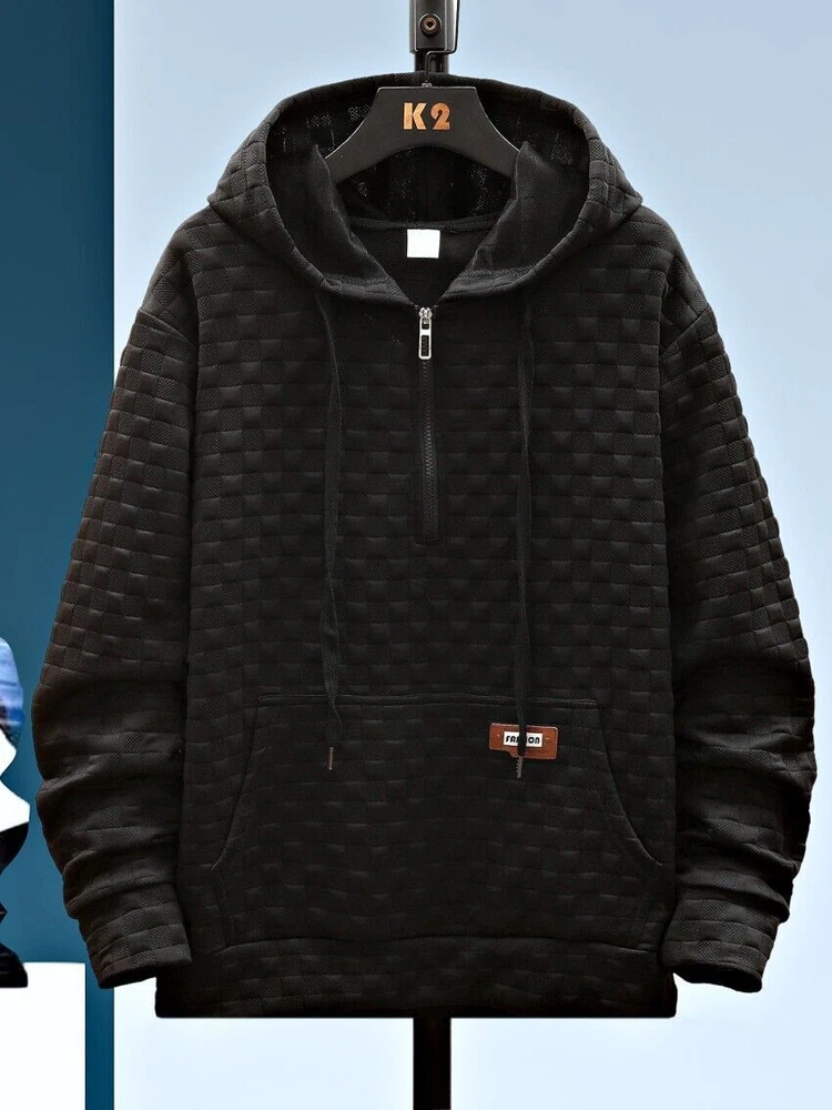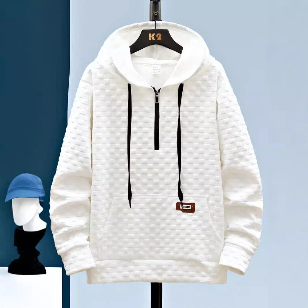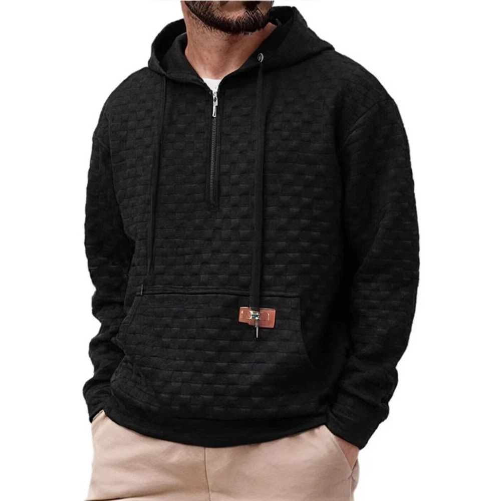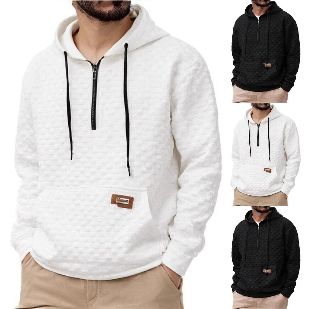 Mens Polyester Hoodie Jumper Long Sleeve Quarter Zip Sports Pullover Sweatshirts