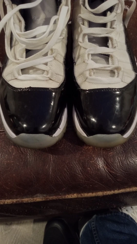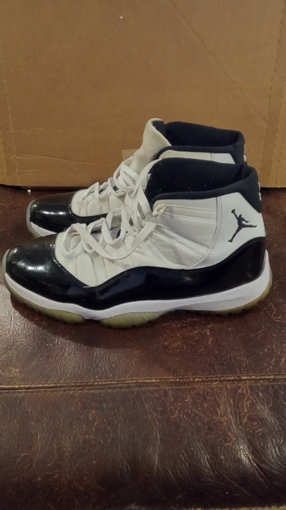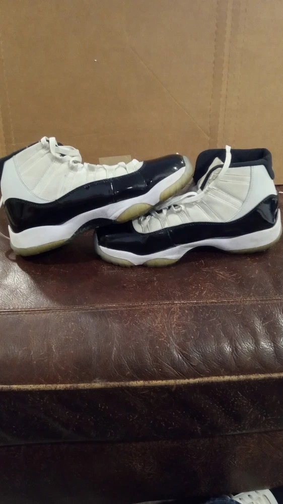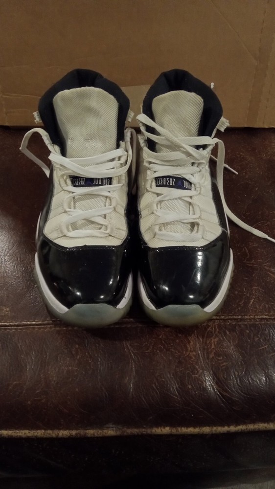 Elevate your sneaker game with these stylish and versatile Jordan 11 Retro High Concord sneakers. Designed with a lace-up closure, these shoes are perfect for any occasion, whether it's for activewear, casual wear, or workwear. The high-top shoe shaft style and solid pattern in a beautiful purple color make these sneakers a must-have for any sneakerhead. Crafted with a leather upper material and foam insole material, these shoes are built for comfort and performance. The rubber outsole material ensures durability, making them suitable for all seasons. These sneakers are perfect for basketball players and fans alike, with the Air Jordan product line and retro theme. READ SNEAKERS ARE IN USED CONDITION WITH PILLING ON THE INNER ANKLE AREA , OTHER THAN THAT THEY ARE IN VERY GOOD SHAPE.