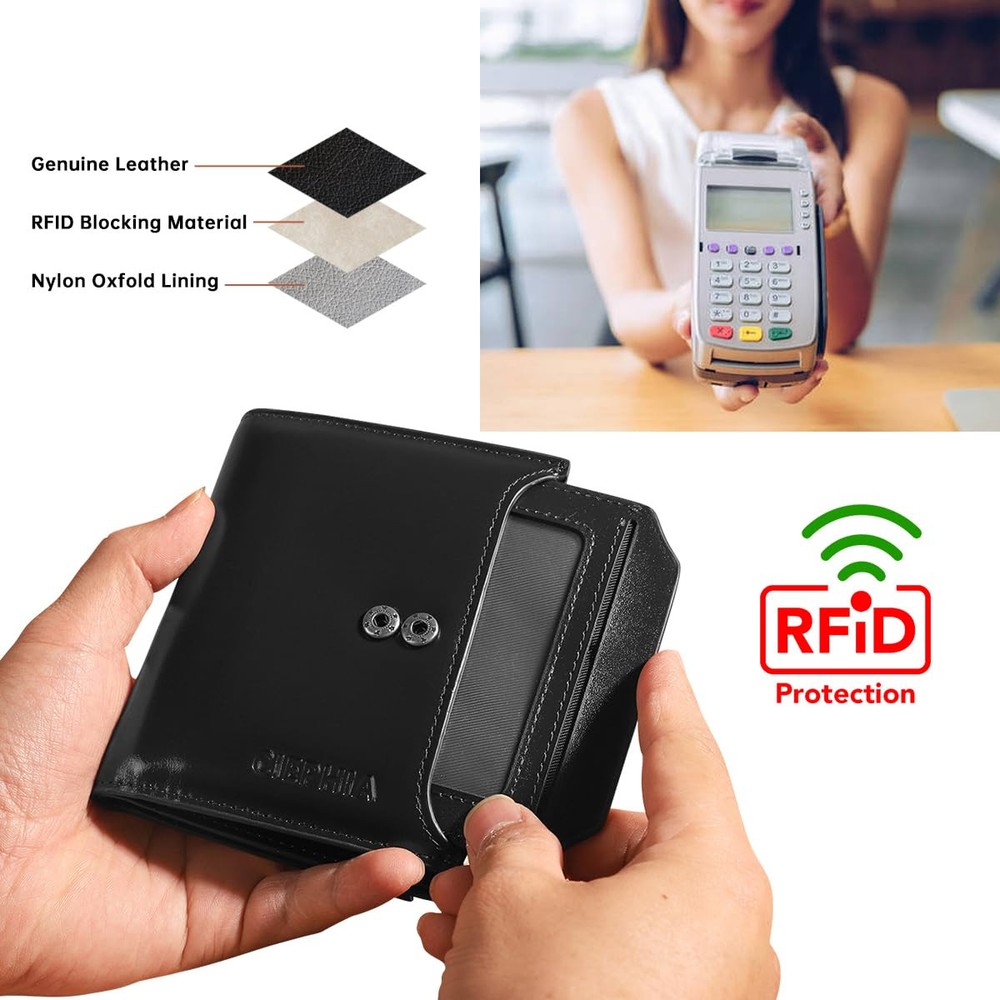 This wallet is a game-changer! The genuine cowhide leather feels premium and ages beautifully, while the RFID blocking keeps my cards safe. It’s surprisingly spacious—14 card slots, bill compartments, and a handy zippered coin pocket make organization effortless. Perfect for daily use or travel, it holds everything without feeling bulky. The quality and functionality are outstanding for the price!
