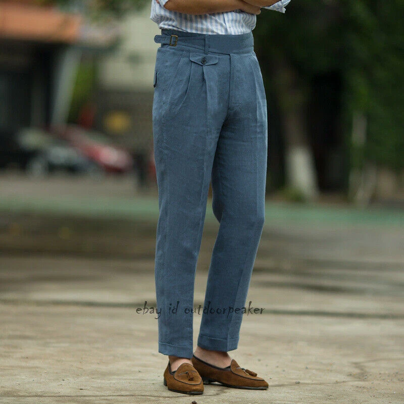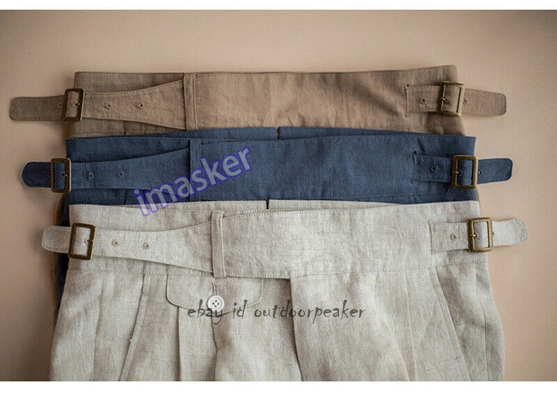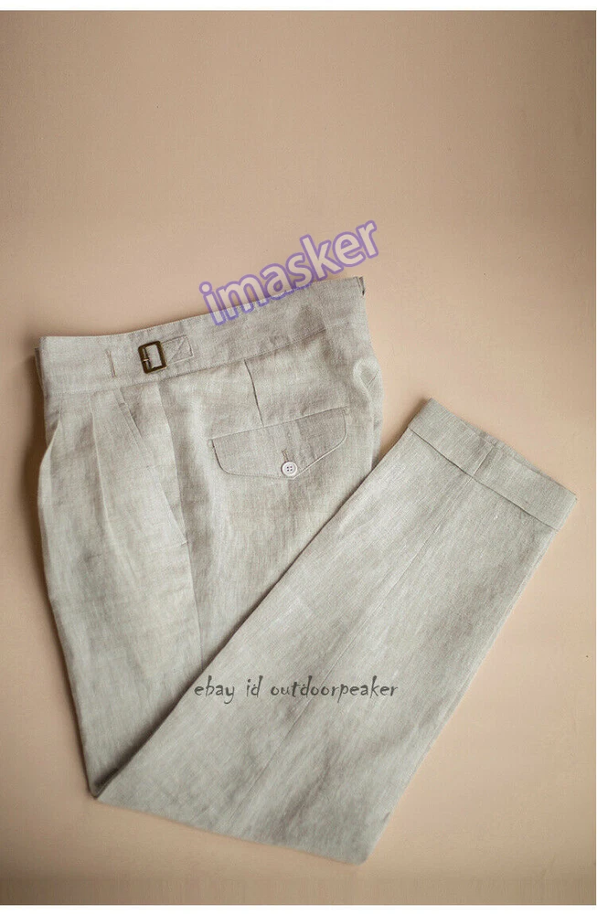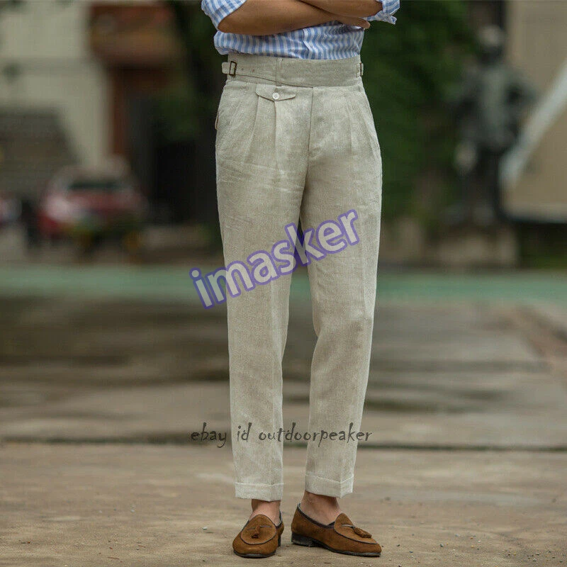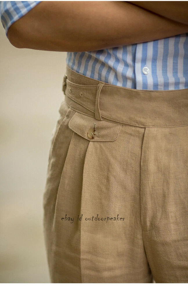 Linen Retro Mens GURKHA Pants Casual Pants Business Trousers Straight High Waist