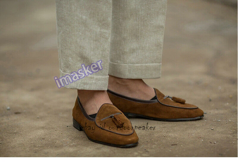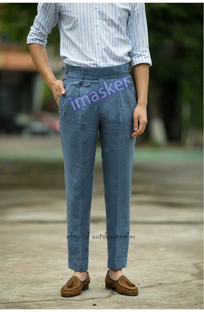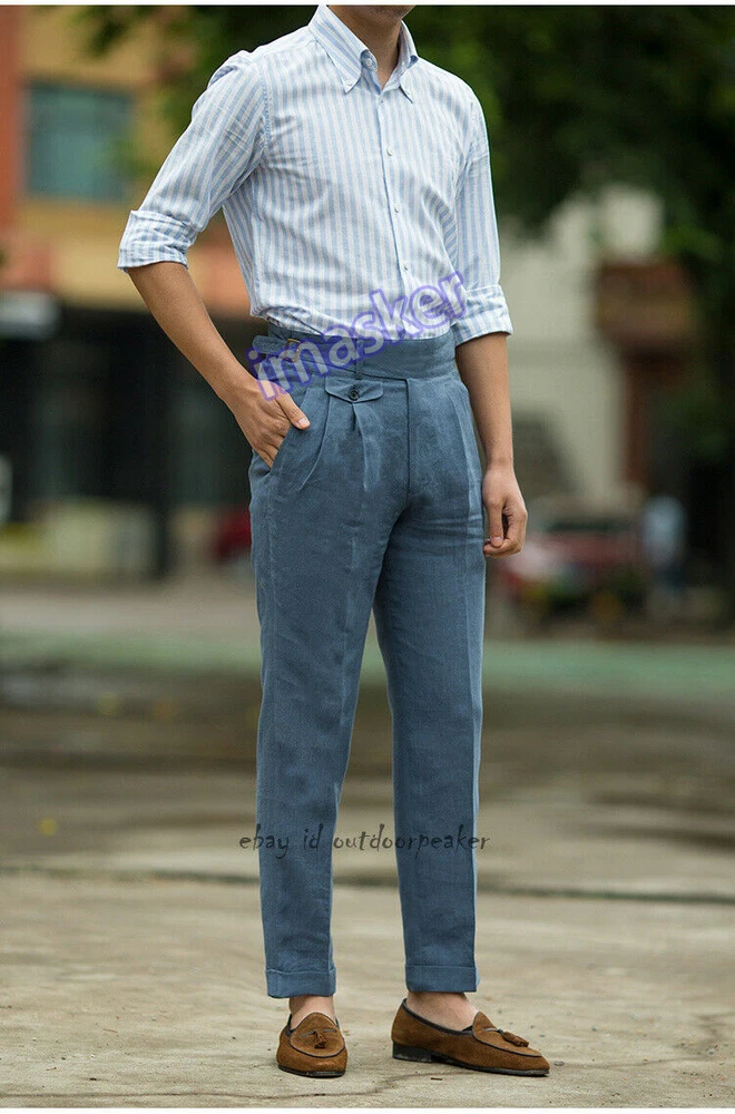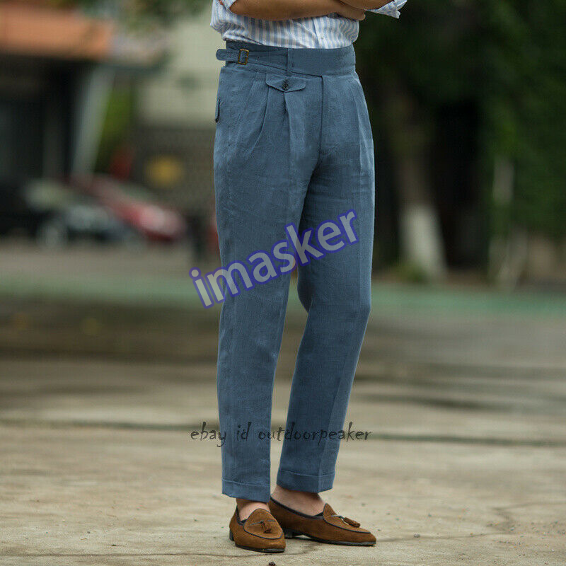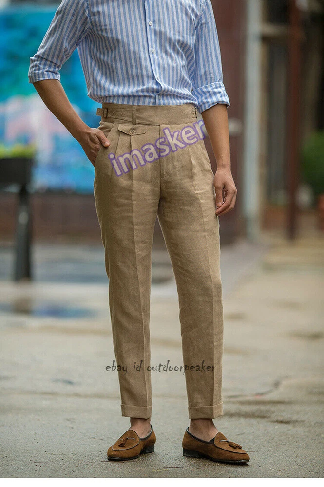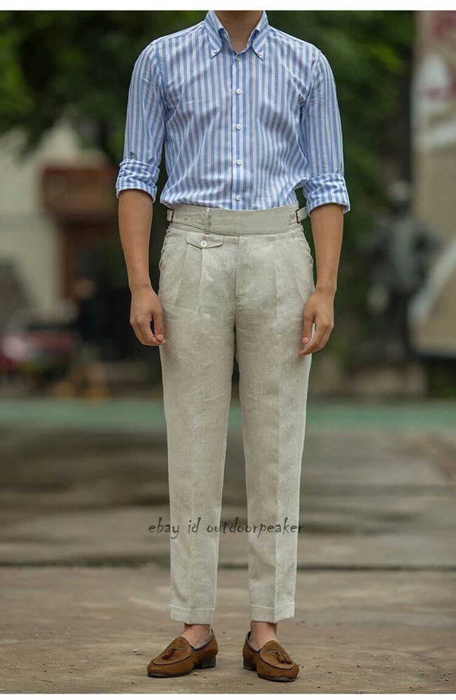 Linen Retro Mens GURKHA Pants Casual Pants Business Trousers Straight High Waist