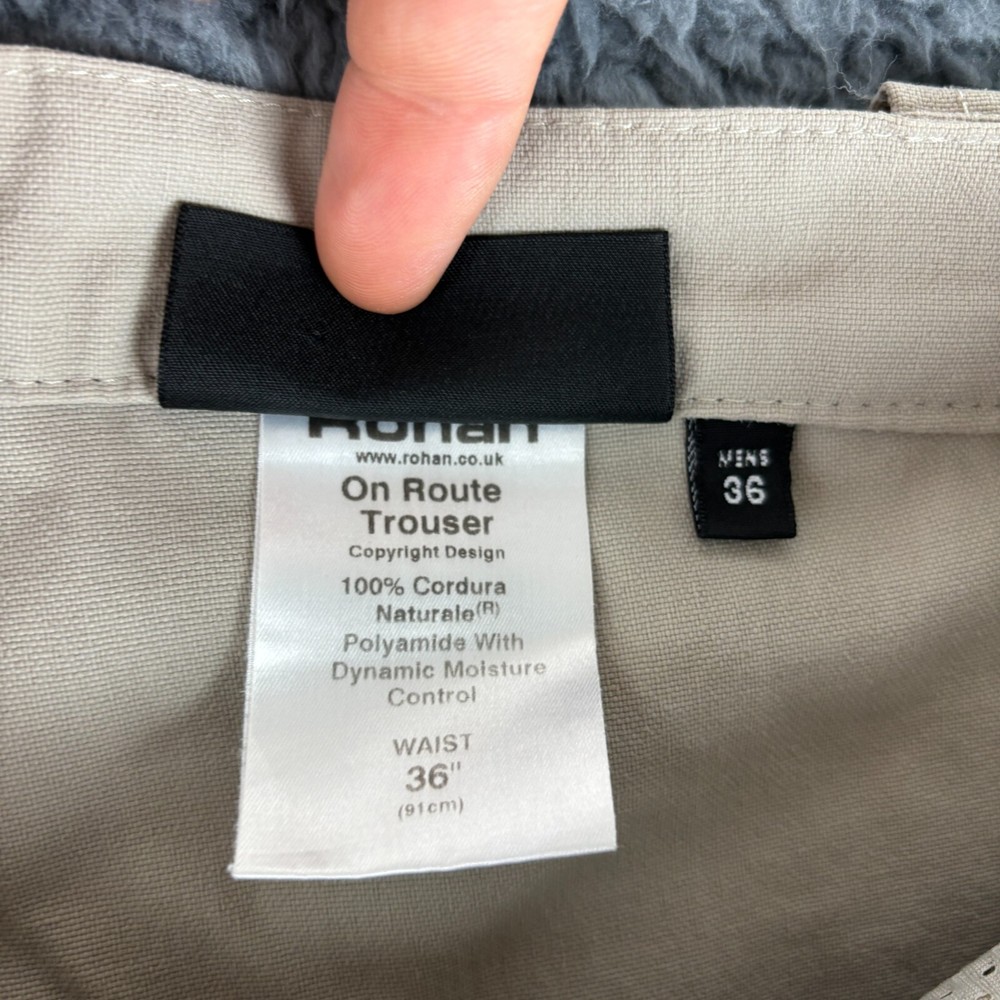 Genuine Rohan On Route Trousers Size: Item tagged as W36 Excellent used condition. Please note that used items may have some pilling, wear and fading (especially around the collar and other seams). Any notable damage or excessive pilling/wear/fading will be noted. Items washed/cleaned in line with manufacturer guidelines. I will ship this item out via 2-3 Day Mail with a tracking number for confirmation I ship items out EVERY DAY so EXPECT a QUICK delivery! Please feel free to ask any questions you may have I answer most questions instantly!