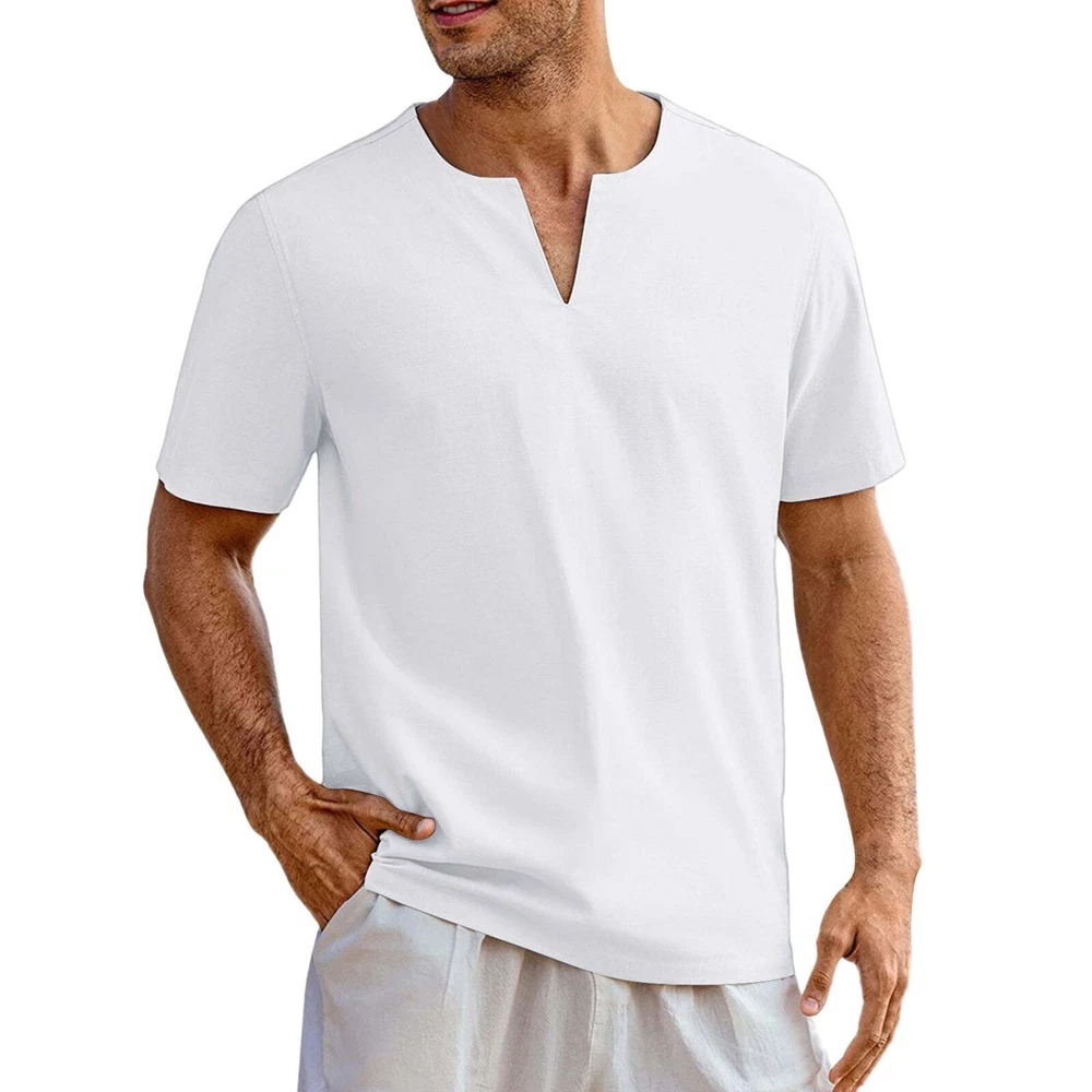 Product information: Color: black, white, navy blue, khaki Size: M,L,XL,XXL,XXXL Style: pullover Applicable scenarios: Leisure Sleeve type: Regular Main fabric composition: Cotton Note: 1. Asian sizes are 1 to 2 sizes smaller than European and American people. Choose the larger size if your size between two sizes. Please allow 2-3cm differences due to manual measurement. 2. Please check the size chart carefully before you buy the item, if you don't know how to choose size, please contact our customer service. 3.As you know, the different computers display colors differently, the color of the actual item may vary slightly from the following images. Packing list: Short sleeved * 1 Product Image: