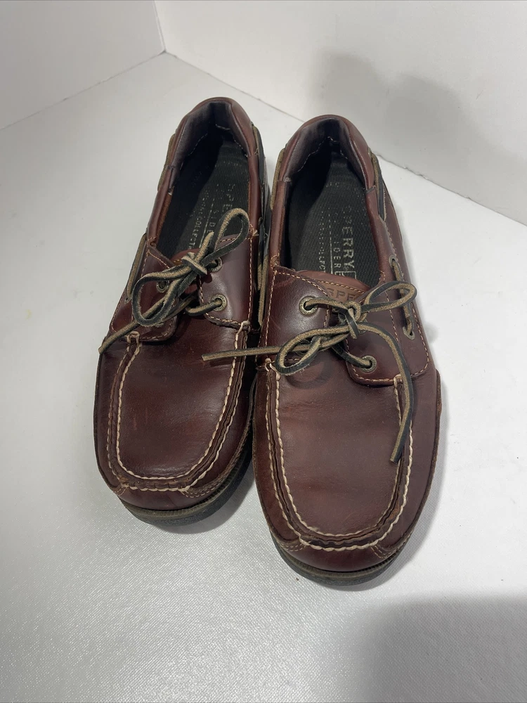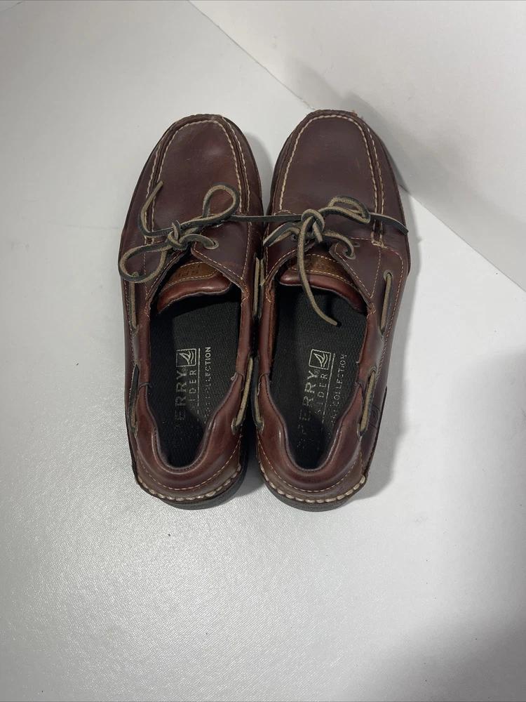 US Shoe Size:10Brand:SPERRYDepartment:MenUPC:Does not applyType:CasualCountry/Region of Manufacture:ChinaUpper Material:LeatherOutsole Material:LeatherClosure:Lace UpProduct Line:Top SiderStyle:Boat ShoeToe Shape:Square ToeColor:BrownModel:Stingray CollectionPattern:Solidgtin13:Does not applyShoe Width:M