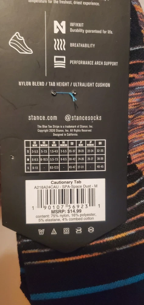 Men's Stance Performance FreshTek Cautionary Tab Socks in size M (6 - 8.5) offer a comfortable athletic style. Featuring a space theme with a multicolor design, these no-show socks are designed for men. Pictures are of actual socks. Brand new never worn and no defects. Feel free to contact me with any questions.
