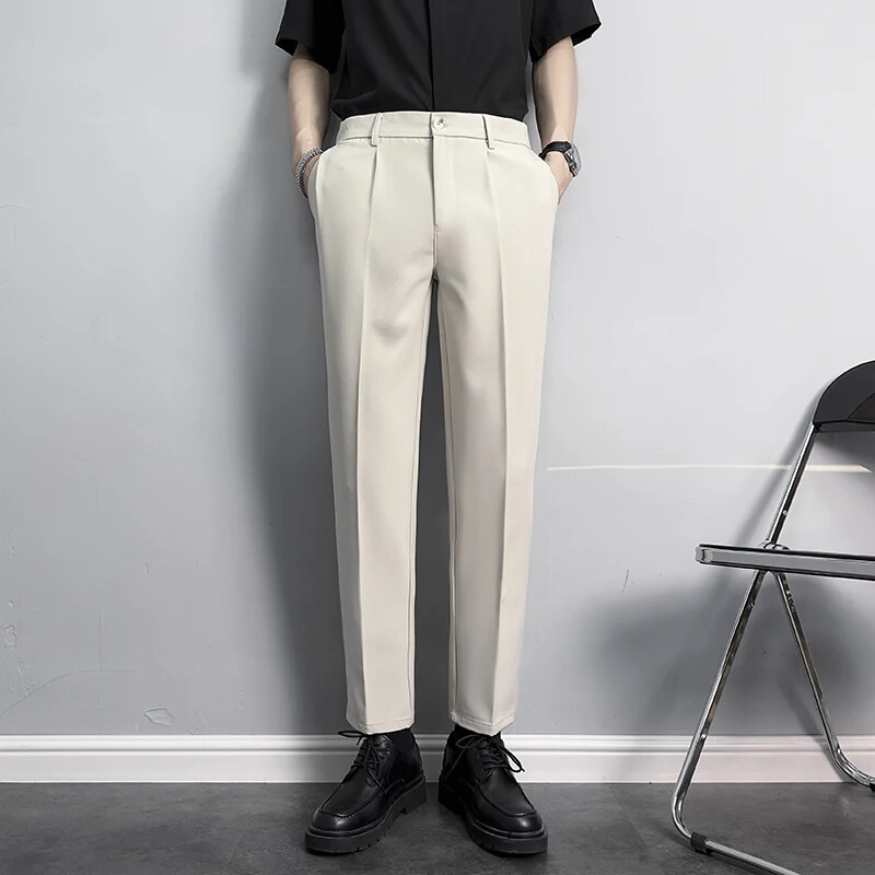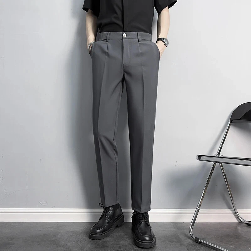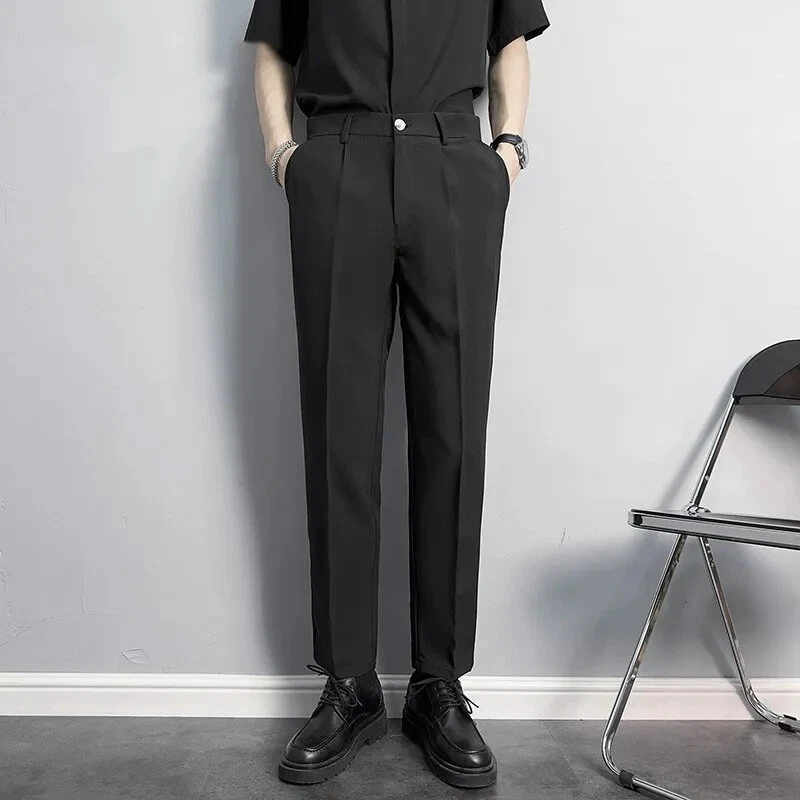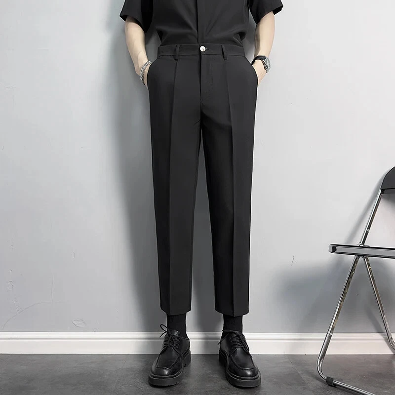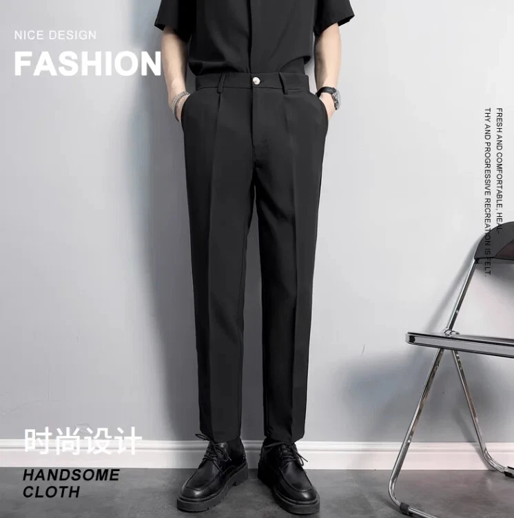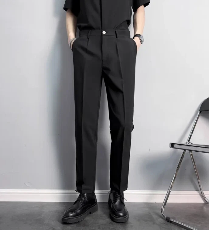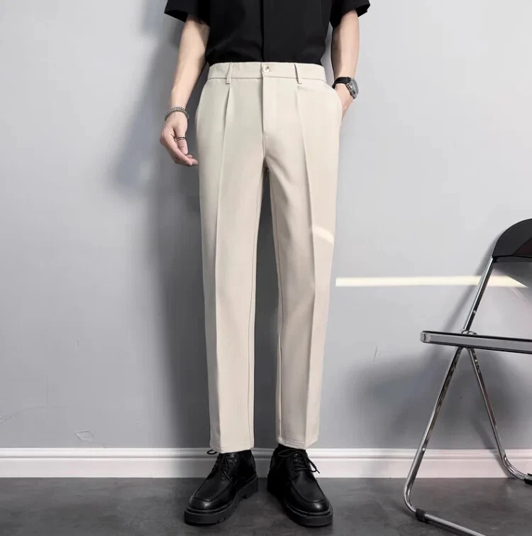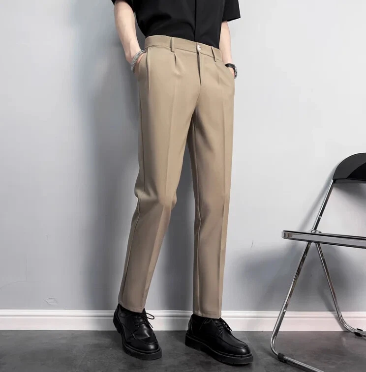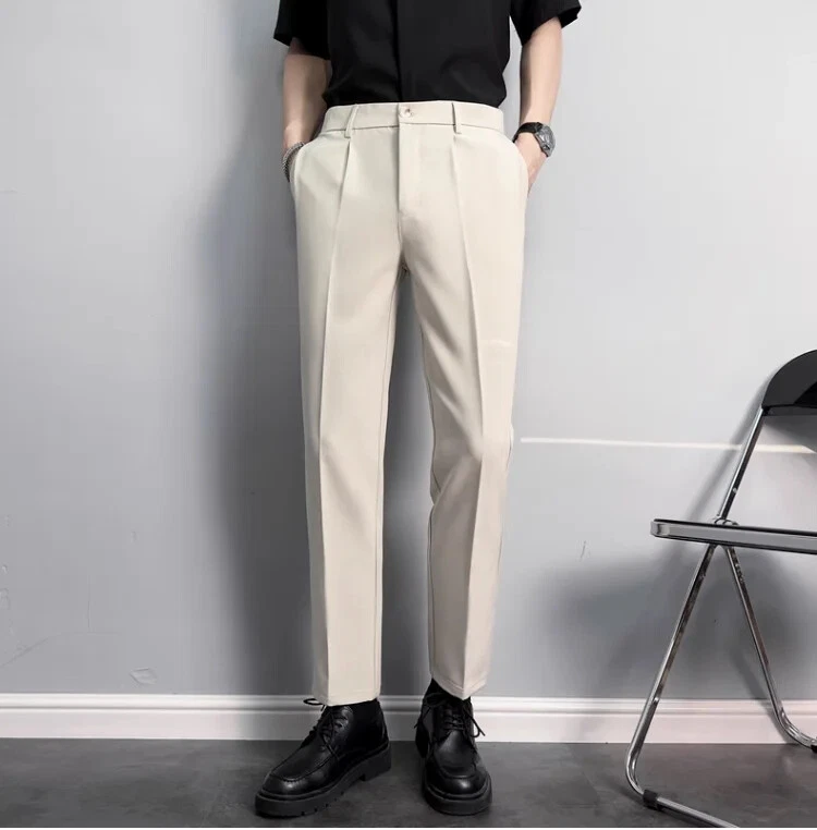 These pants are a game-changer! The fit is perfect—slim but comfortable, great for both office and casual wear. The anti-wrinkle fabric keeps them looking sharp all day, and the quality feels premium. Love the straight-leg design—very stylish yet professional. Highly recommend for any guy needing versatile, polished trousers.