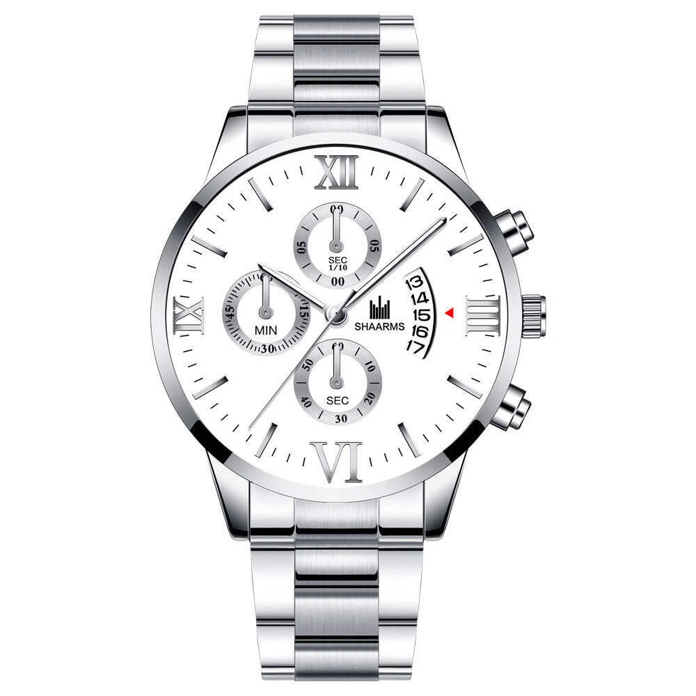 Men's Stylish Quartz Watch with Steel Strap and Calendar Feature Overview: New fashion men's quartz watch Specification: Head diameter: 41mm Head thickness: 10mm Strap width: 20mm Watch weight: 80g Total length of the watch: 245mm Print LOGO: Yes Display type: pointer Applicable crowd: Male Style: Fashion Waterproof: No Movement type: Quartz Thickness: 10mm Dial diameter: 41mm Table bottom type: Ordinary Mirror material: Ordinary glass mirror Buckle style: Single folding buckle Buckle material: Stainless steel Strap material: Stainless steel Dial shape: Round Case material: Stainless steel Package Content: Quartz watch*1 Men's Stylish Quartz Watch with Steel Strap and Calendar Feature Overview: New fashion men's quartz watch Specification: Head diameter: 41mm Head thickness: 10mm Strap width: 20mm Watch weight: 80g Total length of the watch: 245mm Print LOGO: Yes Display type: pointer Applicable crowd: Male Style: Fashion Waterproof: No Movement type: Quartz Thickness: 10mm Dial diameter: 41mm Table bottom type: Ordinary Mirror material: Ordinary glass mirror Buckle style: Single folding buckle Buckle material: Stainless steel Strap material: Stainless steel Dial shape: Round Case material: Stainless steel Package Content: Quartz watch*1 eBay integration by