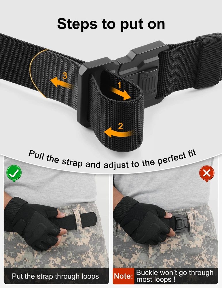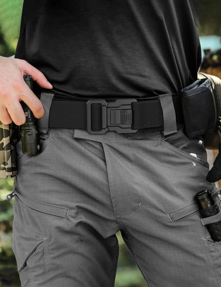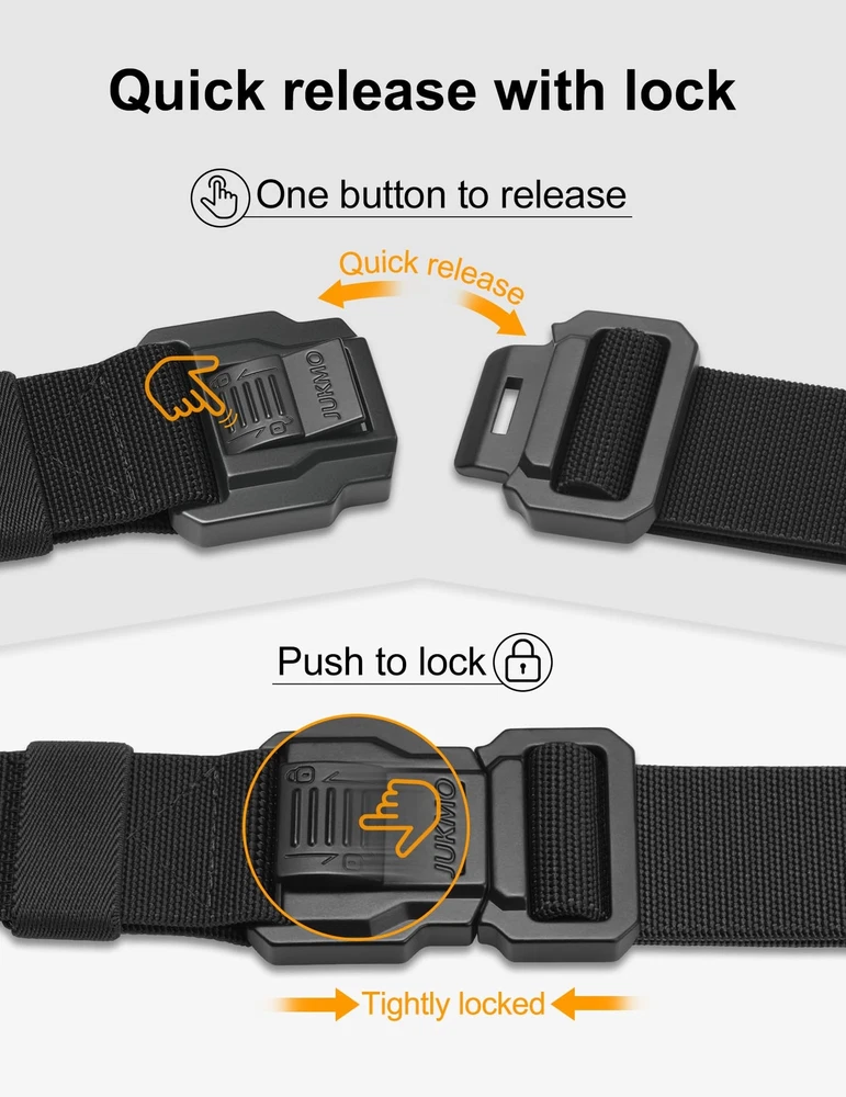 Description 8#ZS Tactical Belt with Lock, Military Work 1.5" Stretch Nylon Web Hiking Quick Release Belt with Heavy Duty Seatbelt Buckle. is a brand that is extremely detail-oriented focusing on men's belts. In order to ensure that our men’s belts meet the expectations of every customer, every detail of product quality is strictly checked by our staffs. We have only one goal that is to make every customer feel that they make every penny count and that the product is worth owning, which is our responsibility. QUICK RELEASE BUCKLE WITH LOCK:The crafted heavy-duty buckle is made of zinc alloy. As long as you push the button on the buckle, the buckle would release instantly. It is super convenient to release your pants for doing whatever you want to do. You would never meet a belt so quick convenient like this. In addition, has upgraded the safety design of the buckle. You only need to gently push the buckle lock to Completely prevent the buckle from suddenly release HIGH QULITY STRETCH NYLON:We intent to make the strap be stretch. The strap is made by special stretch material which is more solid than regular belt. More than that, it is very sturdy as well as stretch, which make your waist be more comfortable as well as stay tight, when you take large range of activities. Anyone who do physical activities for a long period of hours will get a great use out of the tactical belt FOR SPECIAL YOU: Our solid belt suits for military, SWAT, police , fire fighters, work, rigger, sport and other tactical users. Anyone who need to take any activity such as fishing and camping will be in harmony with the belt AS A PRESENT: Our elaborate belt is enclosed in an elegant gift box for you giving whoever you love, or yourself SHOPPING GUARANTEE:If you meet any problems after purchasing the belt, please don't hesitate to contact us. We promise to provide you 100% satisfying guarantee