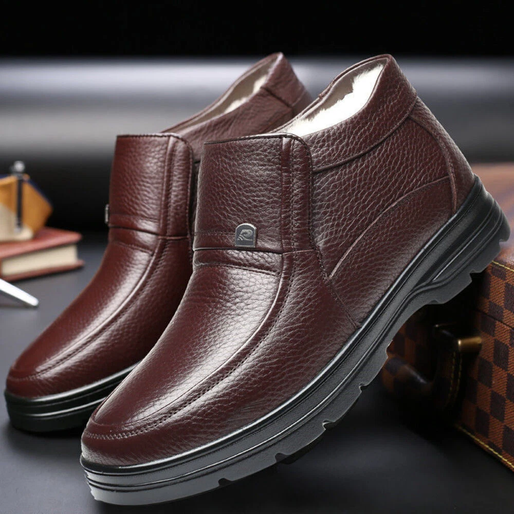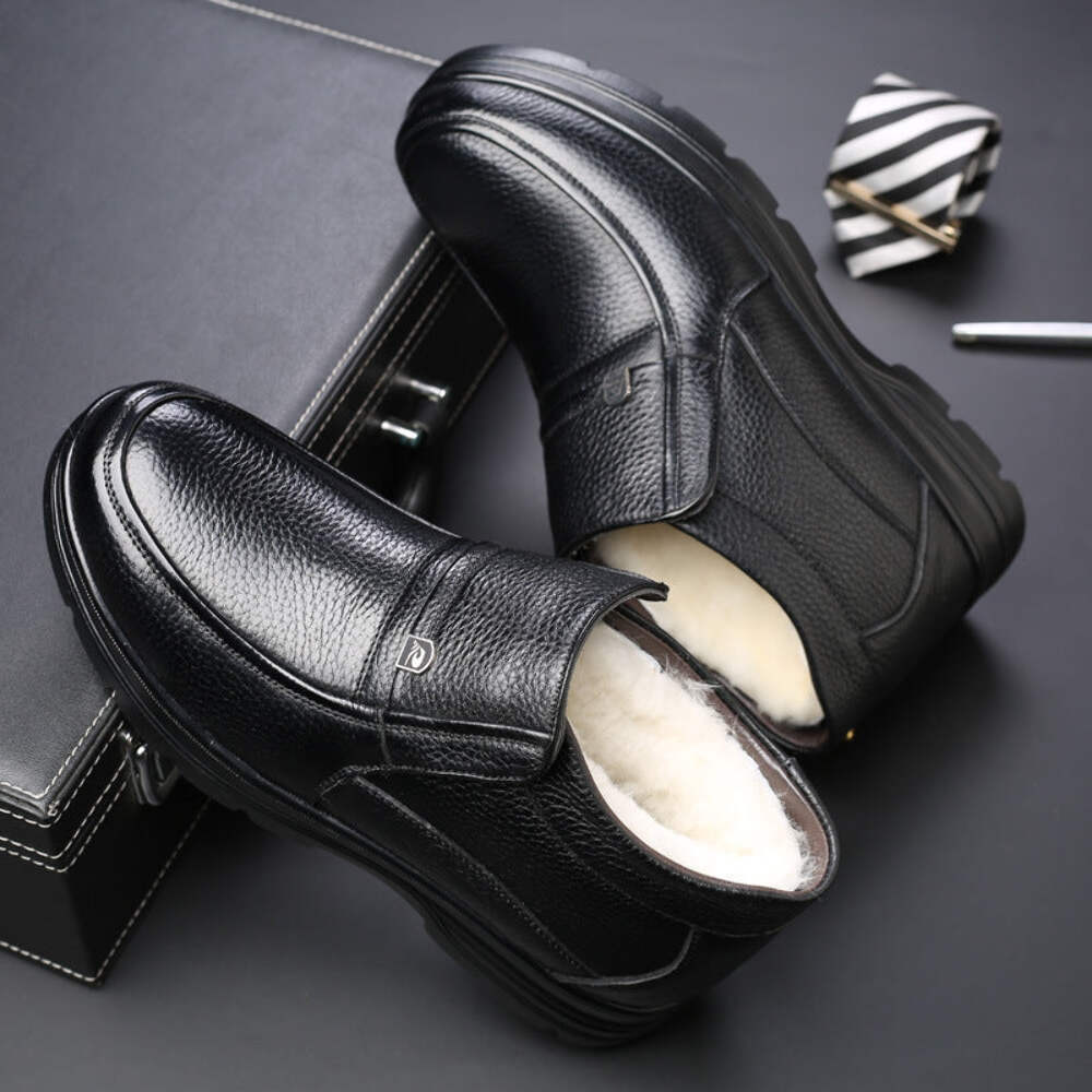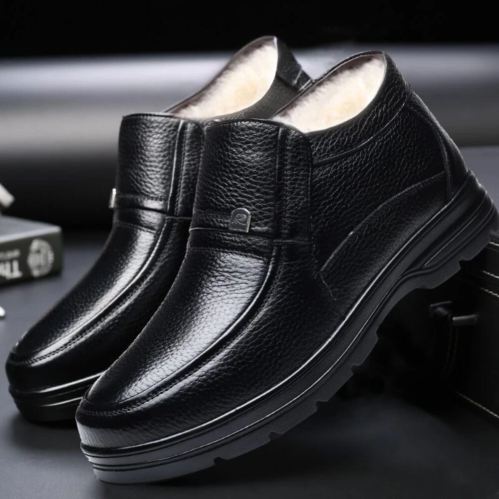 Function: non-slip, warm Applicable gender: male Upper material: leather Sole Material: Rubber Thickness: thicker Popular elements: car suture Cortex features: first layer cowhide Style: casual cotton shoes Toe shape: round head