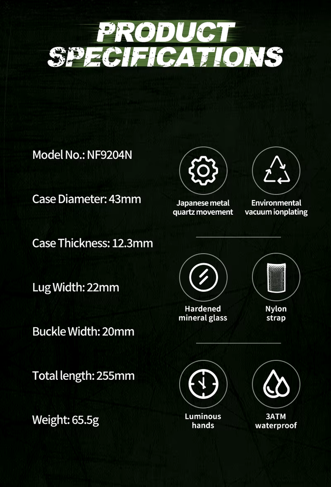 Experience Timeless Style with a 30M Water Resistant Quartz Wrist Watch Featuring Luminous Hands & Nylon Strap Upgrade your accessory game with this men's waterproof watch, combining the durability of a nylon strap, the precision of quartz movement, and the sophistication of a luxury business watch. Perfect for both sport casual and professional settings, this mineral glass watch is engineered for reliability and style. Key Features ✅ 30M Water Resistant Watch: Confidently wear your men's waterproof watch in rain or during handwashing. ⭐ Luminous Hands Watch: Effortlessly read the time in low light with bright, luminous hour and minute hands. ➡️ Durable Nylon Strap Watch: Comfortable, breathable, and built for active daily wear. 💎 Mineral Glass Watch Face: Hardened mineral glass resists scratches for long-lasting clarity. 🕒 Quartz Wrist Watch Movement: Reliable, accurate timekeeping for business or leisure. 📅 Date & Day Display: Stay organized with clear calendar features. 🏆 Luxury Business Watch Design: Sleek, modern aesthetics suitable for any occasion. Detailed Overview Discover the ultimate blend of performance and elegance with this men's waterproof quartz wrist watch. Designed for those who demand both style and substance, this luxury business watch features a robust 30M water resistance rating, making it ideal for daily wear, outdoor adventures, and unexpected weather. The nylon strap watch construction ensures a lightweight, comfortable fit that stands up to the rigors of sport casual activities, while remaining refined enough for the office or formal events. The heart of this quartz wrist watch is its precise and dependable quartz movement. You can trust this timepiece to keep accurate time, whether you're managing a busy workday or timing your next workout. The luminous hands watch feature means you'll always be able to check the time, even in dim environments, adding both practicality and a modern touch to your accessory collection. A standout feature of this mineral glass watch is its hardened mineral glass dial window. This material is specifically chosen for its scratch resistance and clarity, ensuring your watch face remains pristine and easy to read. The 43mm dial diameter provides a bold yet balanced presence on the wrist, complemented by a 12.3mm case thickness that strikes the perfect balance between durability and comfort. Functionality is at the forefront with the integrated date and day display, allowing you to stay organized and punctual without needing to check your phone. The classic buckle clasp secures the nylon strap, providing a snug yet easily adjustable fit for wrists of various sizes. At just 65.5g, this sport casual watch is lightweight enough for all-day wear, yet substantial enough to feel robust and dependable. The versatile style of this men's waterproof watch ensures it transitions seamlessly from business meetings to weekend adventures. The luxury business watch design, paired with sport casual watch functionality, makes it the perfect gift for yourself or any discerning gentleman. Each purchase includes the brand new original watch, a warranty card, and a user instruction manual for your peace of mind. Specifications Feature Detail Model NAVIFORCE NF9204N Movement Quartz Movement Gender Men Style Fashion, Casual, Sport, Luxury, Business Dial Window Material Hardened Mineral Glass Band Material Nylon Strap Clasp Type Buckle Dial Diameter 43mm Case Thickness 12.3mm Band Length 255mm Band Width 20mm Product Weight 65.5g Water Resistance 30M Features Luminous Hands, Date & Day Display Included Items Original Watch x1, Warranty Card x1, Instruction x1 Product Gallery Shipping Information We deliver to addresses within the United Kingdom. International customers may order through eBay’s Global Shipping Programme, which manages international delivery on our behalf. Orders are typically dispatched within 3 working days following payment verification. In most cases, dispatch occurs within 24 hours unless stock is temporarily unavailable. Standard UK delivery takes 5–10 business days, excluding weekends and public holidays. International delivery times may vary. Free standard shipping is included within the UK unless otherwise stated. Every order comes with a UK-based tracking number from trusted couriers such as Evri or Royal Mail. Please ensure your eBay-registered delivery address is correct before completing your purchase. Payment Details We use eBay's managed payment system. All transactions are securely handled through the eBay platform, and we never request or accept payments outside of eBay. Returns Policy Your satisfaction is important to us. If you are pleased with your purchase, we kindly request positive feedback. Should any issues arise, please contact us immediately through eBay messages, and we will respond promptly. We offer a free return policy within 30 days. Please send us an image of the product, and we will issue or upload a return label free of charge. In the event that your item is lost during transit or arrives damaged, we will promptly replace the item. Express Postage We offer an Express postage option. If you require Express shipping, please contact us prior to payment so we can adjust the postage accordingly. Contact Us If you have any questions about our products or your order, please message us via eBay. We usually respond in less than 24 hours, Monday to Friday.
