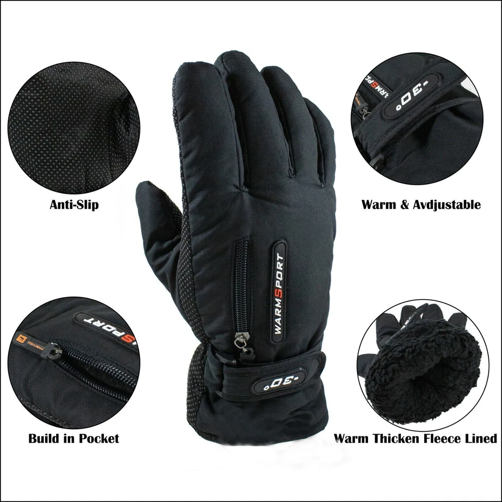 Advantage -Specially designed for winter outdoor sports, skiing, cycling, skating, climbing, running and outdoor working in cold winter. -Anti-slip dots in full palm of gloves is effectively helping you grip things safely and firmly. -Thicker fleece layer compared with similar items on market, more breathable and moist wicking (Cold proof -30℉) -Waterproof TPU membrane sewn in the special way, windproof shirred elastic wrists. -With zipped pocket, it's convenient to store small items such as keys, coins etc. Weatherproof: Made of waterproof material, effectively prevent rain and snow. Keep your hands warm and dry at -30℉ It can meet your needs for outdoor work and exercise. Anti-skid design: Anti-skid palm area. Buyer Note: If you are satisfied with our service, we appreciate you leaving us a positive feedback and 5 star rating review! Your opinion is important to the success of our business. If you are not satisfied with the product or have not received the product for more than 35 days, please contact us to resolve, we will do our best to solve. We are sure to come up with a satisfactory solution. Please contact us first before leaving cold feedback or good feedback of 1-3 stars and opening the case. We'll do our best to solve your problem. Because we believe that everything can be solved through communication. Thank you very much!