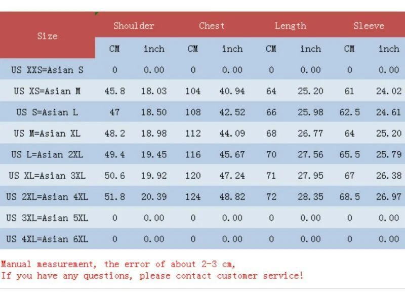 New Hot Sale Fashion Men‘s Male Boy Mens Coats Overcoats Jacket Outwear Slim fit Clothes Specifications: Material : Size :US XS S M L XL XXL XXXL 4XL 5XL /Asian M L XL XXL XXXL XXXXL XXXXXL 6XL 7XL The Tag of The clothes you received is Marked as Asian Size(Eg : if you Ordered US L=Asian XXL,the tag is XXL) China Item Run small,Suggest you choose next size up Than Usual If you are not sure about the size,please give me your height in CM and weight in KG and the size you usually wear Any problem, contact me for satisfying solution. Reply in 24 hours as time difference. Men Size (Clothes) height(CM) Weight(KG) US XXS=Asian S 165 <50 US XS=Asian M 170 <55 US S=Asian L 175 60 US M=Asian XL 180 65 US L=Asian XXL 185 70 US XL=Asian XXXL 190 80 US XXL=Asian XXXXL 195 90 Country Delivery Time Note United States 8-20 work days not received 30 days Contact me refund Canada,UK 10-25 work days not received 37 days Contact me refund Europ 15-25 work days not received 40 days Contact me refund Some of Europ:Bulgaria,Albanien,Rum?nien,Czech Republic 15-30 work days not received 45 days Contact me refund Argentina,Israel,Russia,Brazil,Peru, Chile,Armenia,Ukraine,South Africa,Bosnia and Herzegovina and others 20-40 work days not received 55 days Contact me refund eBay Cross Border Trade powered by ChannelEffect eBay Cross Border Trade powered by ChannelEffect