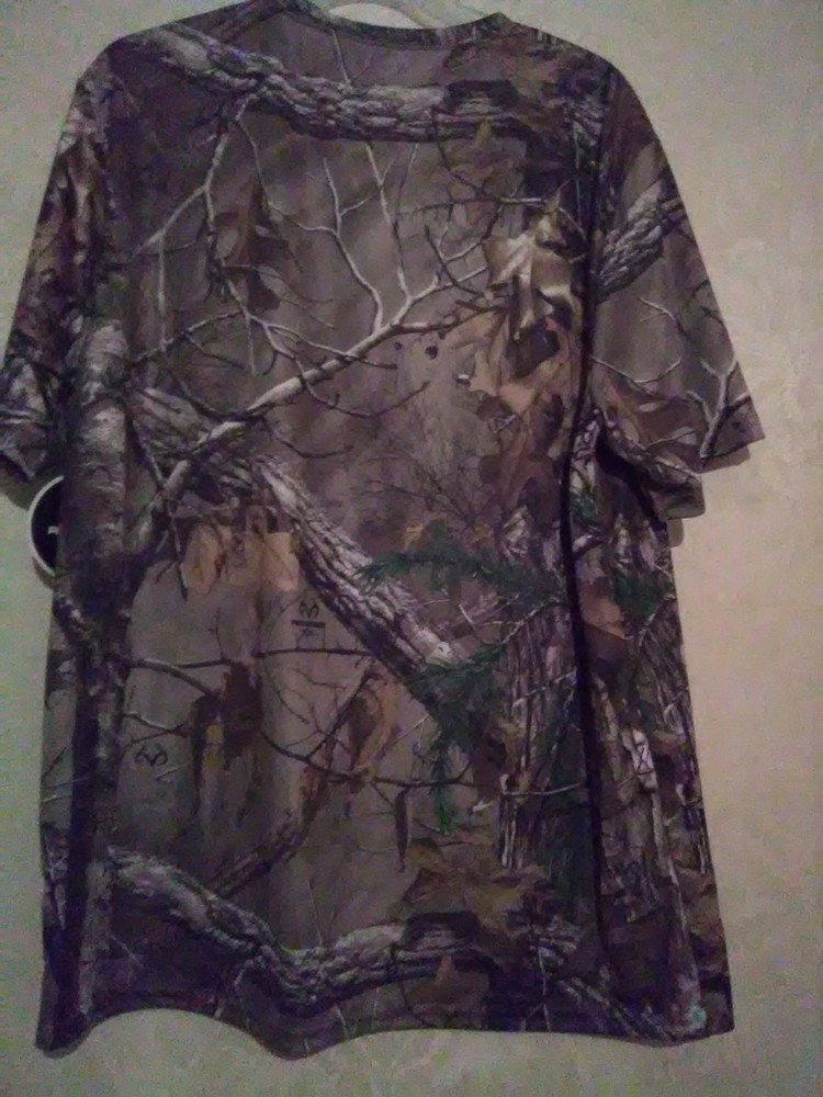 Size: Men's XXL 46-48 Realtree Officially Licensed Product Brown t-shirt, realtree Short sleeves. Moisure management fabric pulls sweat away front body to keep you dry. Full, loose fit won't restrict movement. Material: 100% polyester One standard photo used to represent all sizes and may not match the size indicated in this listing