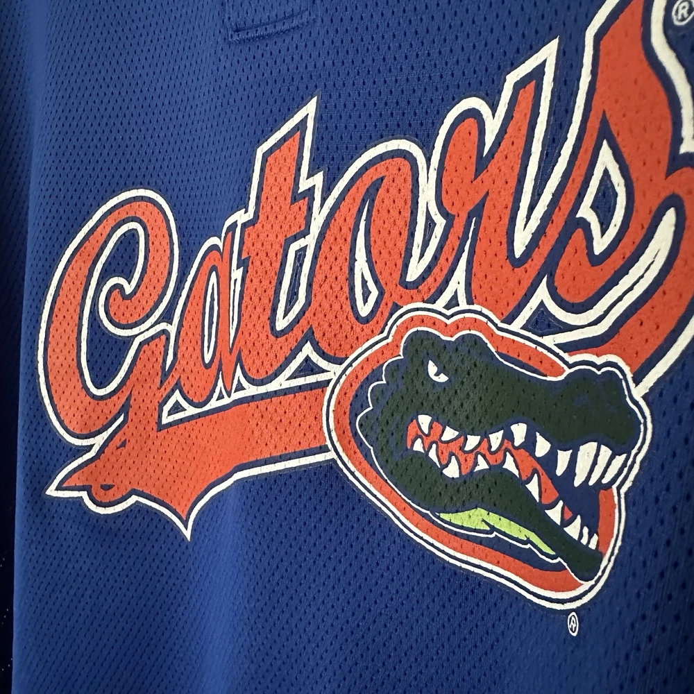 Men's XL Florida Gators Jersey Mesh Shirt Russell Athletic Henley Blue Orange approximate measurements lying flat length: 30" sleeve: 9" armpit to armpit: 25" 📦Packaged with care 📬 I will ship it out within 2 business days 🙂Smoke free home ♥️Offers welcome.