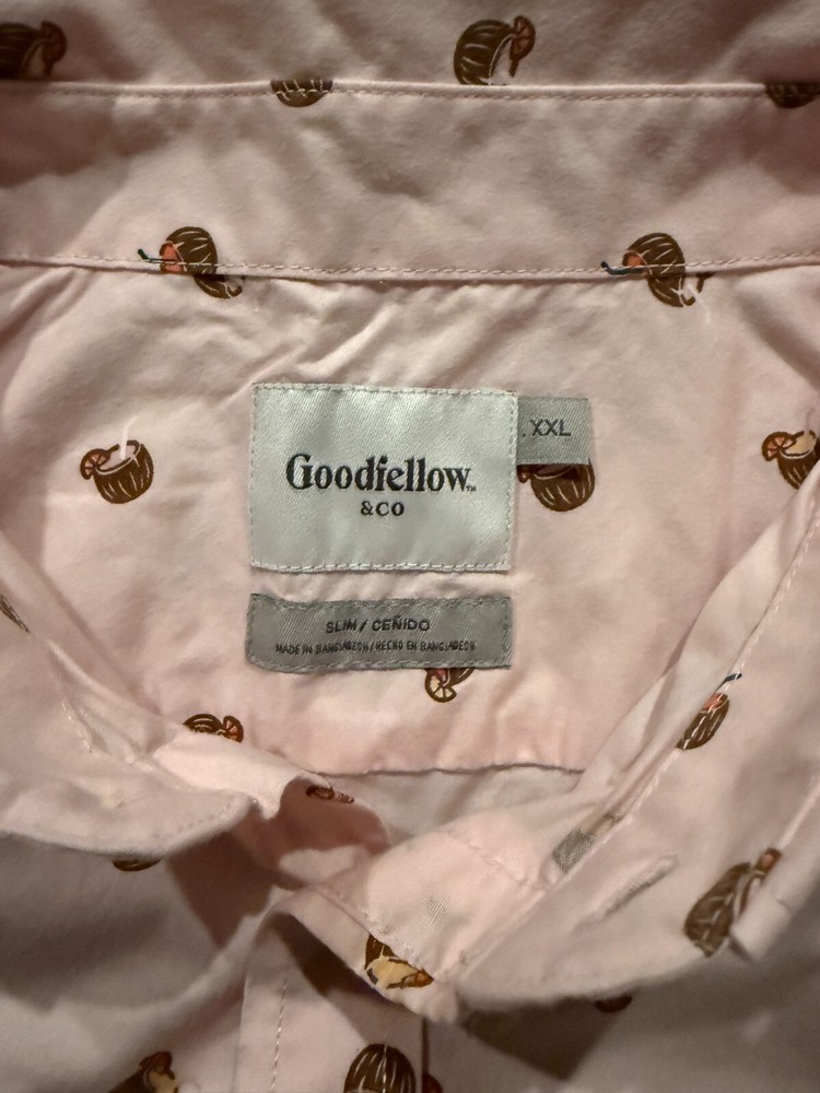 Goodfellow & Co. Men's XXL Pink Button Up Slim Fit Coconut Cocktail All Over Excellent used condition. No rips, stains, or pulls. Cotton | Slim Fit | All Over Print Check out this great looking shirt by Goodfellow & Co. Pink Coconut Cocktail All Over and cotton material for all day cool comfort. 97% Cotton, 3% Spandex Measurements: Chest (pit-to-pit): 25.5", Length: 30.5", Shoulder to shoulder width: 21.5" Sleeve: 10.25" Ship fast via USPS. Thanks for shopping. About MSESDEALS: We (have been selling premium new and used clothing on ebay for more than 4 years. We're looking for repeat customers, not fast cash, so your satisfaction is important to us. We include measurements for all clothing, and closely inspect all clothing for flaws. Any discovered flaws (if any) are detailed in the description, with close up photos included. If you find something you like, consider searching our store for similar items, as we have more than 30 items in inventory and add fresh inventory every week. Founded in San Antonio, Tx. in 2020. Returns accepted within 30 days of purchase. To receive a full refund, the returned item must arrive back in the same condition that it was sent. New items must be returned in new condition, in the sealed package and tags still attached.