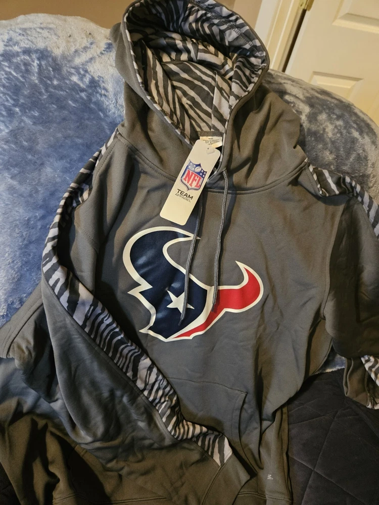 Mens XXL Houston Texans hoodie Gray with zebra stripes down arms and inside hood