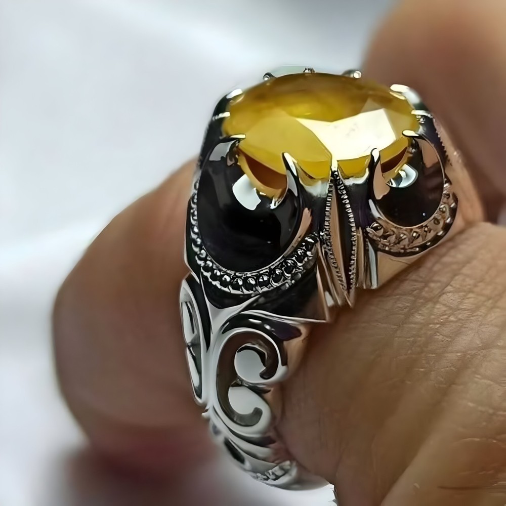 Yellow Sapphire Ring For Men, 925 Sterling Silver Cylon Sapphire Ring Men, Oval Cut Real Gemstone Ring, Pukhraj Silver Ring, Handmade Ring Material : Sterling silver 925 Gemstone: Yellow Sapphire / Pukhraj Sizes: All sizes are available US 5 US 6 US 7 US 8 US 9 US 10 US 11 US 12 US 13 US 14 US 15 US16 Making: Handmade Shipment Detail: Shipment will be in 5-7 days through FedEx intl. Priority services. Because handmade products take some time. We will take care of product quality. Customer Policies: 1) Customer satisfaction is our first priority 2) Product quality will be beyond your expectation 3) If you find any issue regarding your order just email or text us before any feedback/Review. We will sort out your problem ASAP 4) We will respond to your queries ASAP