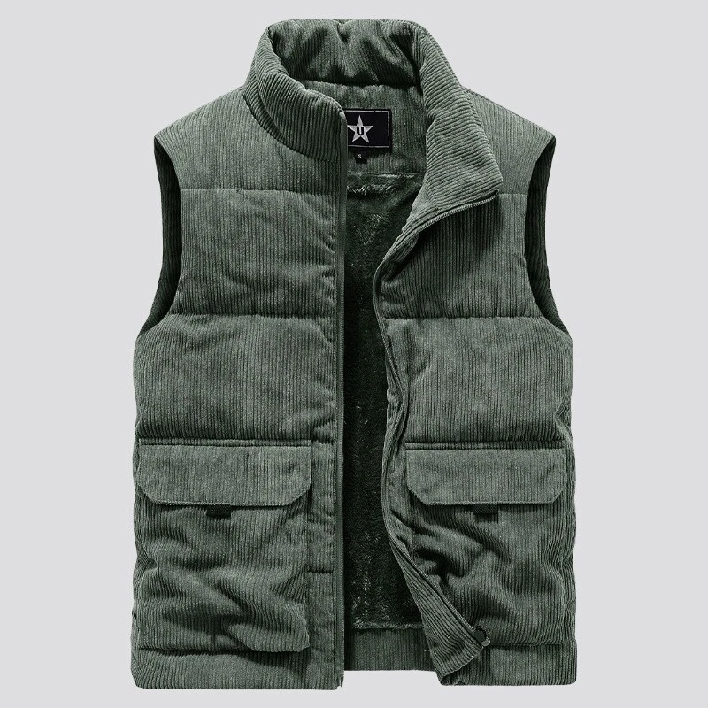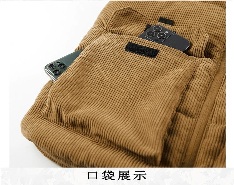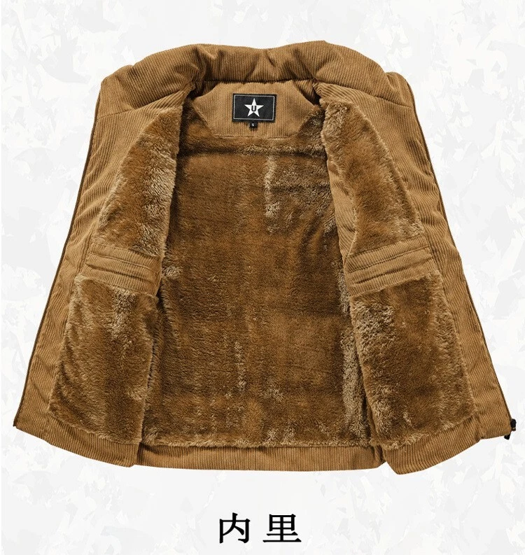 Men's corduroy and velvet stand up collar vest with a vest for warmth