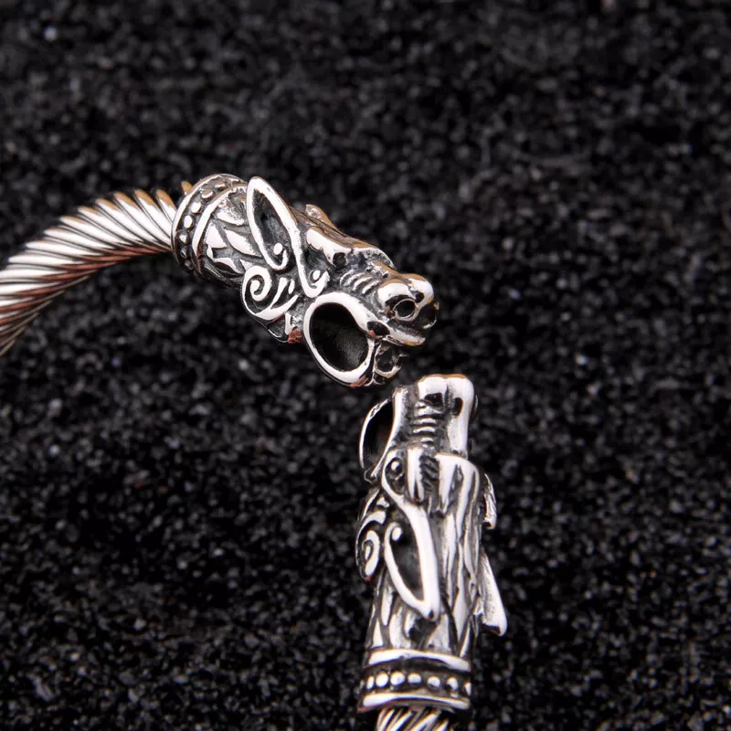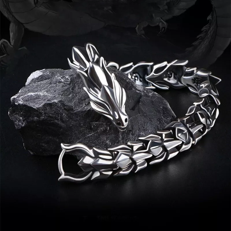 Brand Name : Handmade Gender : Men Metals Type : Stainless steel Origin : CN(Origin) Bracelets Type : Bangles Style : TRENDY Fine or Fashion : Fashion Compatibility : no Model Number : Dragon Bangle Setting Type : None Shape\pattern : Animal stainless steel Dragon Bracelet Jewelry Fashion Accessories Viking Bracelet Men Wristband Cuff Bracelets For Women Bangles Metal:Stainless Steel