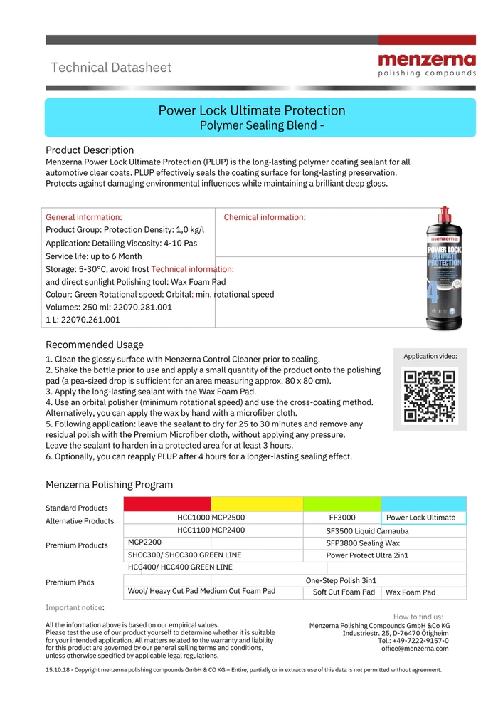 Menzerna Power Lock Ultimate Protection - Long Lasting Car Polish Menzerna Power Lock Ultimate Protection Menzerna Power Lock Ultimate Protection (PLUP) is the long-lasting polymer coating sealant for all automotive clear coats. PLUP effectively seals the coating surface for long-lasting preservation. Protects against damaging environmental influences while maintaining a brilliant deep gloss. Polymer coating sealant for all automotive clear coats The long-haul specialist acts as a lasting sealant, reliably protecting against environmental influences with an unrivalled beading effect and ultimate deep gloss. Benefits: Sealing technology of the latest generation Extremely long service life Maximum protection against environmental influences Premium beading behavior Protects the vehicle’s value Processing: Orbital, by hand Polishing Tool: Wax foam pad, premium microfiber pad Menzerna Power Lock Ultimate Protection - Long Lasting Car Polish Menzerna Power Lock Ultimate Protection Menzerna Power Lock Ultimate Protection (PLUP) is the long-lasting polymer coating sealant for all automotive clear coats. PLUP effectively seals the coating surface for long-lasting preservation. Protects against damaging environmental influences while maintaining a brilliant deep gloss. Polymer coating sealant for all automotive clear coats The long-haul specialist acts as a lasting sealant, reliably protecting against environmental influences with an unrivalled beading effect and ultimate deep gloss. Benefits: Sealing technology of the latest generation Extremely long service life Maximum protection against environmental influences Premium beading behavior Protects the vehicle’s value Processing: Orbital, by hand Polishing Tool: Wax foam pad, premium microfiber pad × × × × × Shipping info Click the Shipping & Payments tab above the listing description for more info FREE Shipping Click the Shipping & Payments tab above the listing description for more info! Additional delivery notes PICK UP OPTION Sorry, our items are NOT available for pick-up. PAYMENT Immediate payment is required upon selecting "Buy It Now" or upon checking out through the cart. We accept payment via U.S. PayPal accounts and all Major Credit Cards, Debit Cards & Google Pay. We are legally required to collect sales tax in those states and localities where we maintain a physical presence (nexus). The applicable amount of sales tax charged to an order will be calculated based on the shipment destination's state and local sales tax laws. Thank you for shopping with us on eBay! Additional Information No additional information at this time Ask seller a question You might also like KARAJEN Magnetic Double Arm Blower Hanger (99902) Primary Drying System, Fast an Magnetic Single Spray Gun Hanger (14024) Fandeli 6x9 Hand Pads Blysk Automotive Cover Plastic sheeting 16' X 350' Contact To contact our Customer Service Team, simply click the button here and our Customer Service team will be happy to assist. Ask seller a question © Maazzo Shipping & Payments Shipping is FREE for this item Payment Accepted Payment Methods Immediate payment is required upon selecting "Buy It Now" or upon checking out through the cart. We accept payment via U.S. PayPal accounts and all Major Credit Cards, Debit Cards & Google Pay. We are legally required to collect sales tax in those states and localities where we maintain a physical presence (nexus). The applicable amount of sales tax charged to an order will be calculated based on the shipment destination's state and local sales tax laws. Thank you for shopping with us on eBay! Returns Returns are accepted Items must be returned within 30 days of the auction ending Buyer will pay for return shipping. eBay integration by