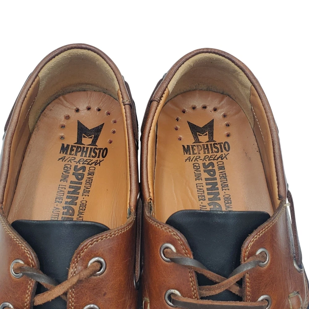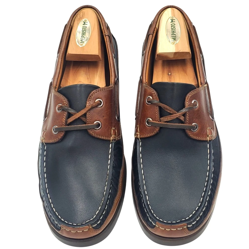 Mephisto Model: Spinnaker Crafted In Croatia Original MSRP: $275 Color: Black Brown US Men's size: 8 Standard width Bottom Sole Measurements (approx) Heel to Toe: 11.5 in Widest Spot: 4 in ==Honest Condition Report== Uppers: 9/10 Light wear creasing, scuffs Linings: 9/10 Outsoles: 9/10 Light wear to soles even wear to heels BOATING model by MEPHISTO : Comfortable and easy to slip on, this boat-style model is an essential for sunny days. Its leather lining promotes a healthy climate inside the shoe. This men's black boat shoe is made of two nuances of greased pull-up effect leathers. Trusted Seller with near perfect feedback! Shoe trees and other props are for display only unless otherwise mentioned in item description/title Discount, value, clearance, sale, cheap, deal, deals, sales, coupon, price, Features: • Loafer Size: Mens 8 Condition: Pre-Owned Good Please see item description for full Honest Condition Report