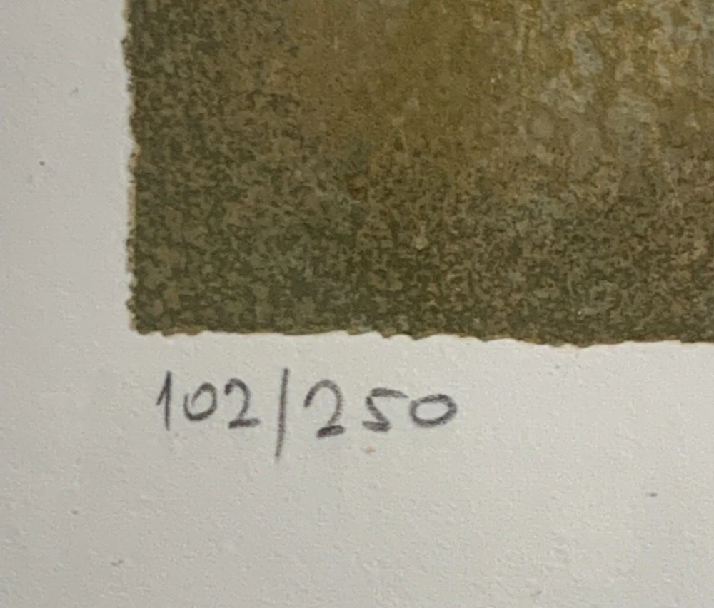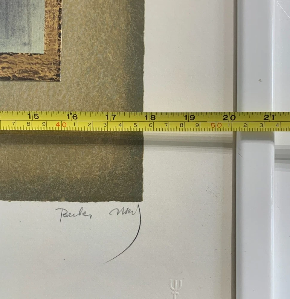 Discover the abstract elegance of Mersad Berber's "JELENA," a hand-signed mixed media that captures the essence of modernism with a touch of Bosnian culture. This portrait-oriented artwork on paper, originating from the contemporary period of 1990-1999, is a unique piece that stands out with its one-of-a-kind presence. Berber's "Jelena" is a testament to the artist's distinctive style, featuring women as its subject and embodying the thematic richness of art. Encased in an elegant frame, signed by the artist himself, and ready to grace any collection with its abstract beauty. From Wiki Early life Berber was born in Bosanski Petrovac, Kingdom of Yugoslavia.[2] He trained at the Academy of Fine Arts in Ljubljana where he graduated with a BA and MA.[3] In 1978, Berber received a teaching position at the Academy of Fine Arts in Sarajevo. Art Today Berber is one of the best known graphic artists in the world. He was included in the Tate Gallery collection in 1984. Throughout his career he created cycles of paintings which chronicle events, homages and dedications. Each cycle has its roots in Bosnian-Herzegovinian history from the medieval to the twentieth century. His works are characterized by the intermingling of ancient motifs with a more modern commentary, captivating in their iconic mystery and intensity. His surfaces are as complex as his subjects, combining techniques from various times and places while maintaining an aesthetic and allure that has drawn collectors for the past 40 years.[2] Berber was occupied with painting, graphic art, tapestry, illustrating and preparing bibliographic editions, graphic and poetic maps. His scenography and costume design came to life in theatres in Ljubljana, Zagreb, Sarajevo and Washington. In 1985 Berber finished Tempo Secondo, his own animated cartoon. From 1992 until his death in October 2012 Berber resided and worked in both Zagreb and Dubrovnik. Awards From 1966 on Berber received more than fifty awards. Among many international prizes he received: Gold Medal and Honorary Diploma at the First International Exhibition of Graphic Art in Trieste, first award at the 11th International Biennale in São Paulo, Honorary Prix at the 10th International Biennale of Graphic Art in Tokyo, first award at the 7th Mediterranean Biennale in Alexandria, ICOM award in Monte Carlo, the Kraków City award at the 4th International Biennale of graphic art, and the Lalit Kala Academy Grand Prix at the 5th Indian Triennale in New Delhi. Kraków Grand Prix in 1997, an Ostend exhibition entitled "Between earth and heaven" and a recent one "Artist of the ideal" in Verona, selected by famous art critic Edward Lucie-Smith, confirmed Berber as one of the most significant contemporary artists. Comprehensive monography studies of Berber's art were published by Mladinska Knjiga, Ljubljana in 1980 and 1985, by Sol Intercontinental, Ljubljana in 1997 and by E&A Agency, Zagreb in 2000.