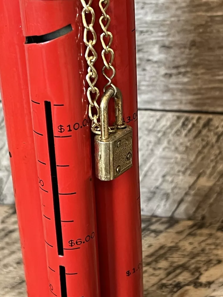 Metal 3 Tower Coin Sorter Triple Tub Bank Quarter Dime Niclel Red. 12 inches tall