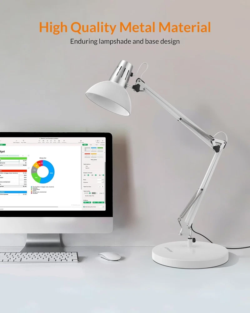 Store New Arrivals Add to Favorite View Feedback Contact Metal Desk Lamp, Adjustable Goose Neck Architect Table Lamp with On/Off Switch, Swing Arm Desk Lamp with Clamp, Eye-Caring Reading Lamp for Bedroom, Study Room &Office (White) Description Item model number UT2020 Light Source Type LED Style Modern Number of Items 1 Power Source Corded Electric Number of Light Sources 1 Control Method Touch Batteries Included? No Lighting Method Adjustable Lamp Type Desk Lamp Number of Pieces 1 Room Type Living,Office Efficiency Energy-efficient Product Dimensions 9.2"D x 6.5"W x 32.4"H Material Metal Installation Type Clip On Controller Type Push Button Finish Type Painted Specific Uses For Product Reading Indoor/Outdoor Usage Indoor Bulb Base E26 Water Resistance Level Not Water Resistant Batteries Required? No Item Weight 7.3 Pounds Connectivity Technology USB Connectivity Protocol Homeplug Special Features Saving place, Swing arm Special Feature Saving place, Swing arm Shade Height 10.6 Inches Part Number 003-MDL-03-WH Shade Color White Mounting Type Tabletop Color White Wattage 6 watts Is Cordless? No Base Material Metal Is Waterproof False Shape Desk Lamp Voltage 120 Volts Recommended Uses For Product Reading Shade Material Metal Finish types Painted Included Components User Manual Switch Type Push Button Metal Desk Lamp: This lamp is integrated with a well-made metal lampshade and base, heavy-duty, enduring, and aesthetic, brightens your living room, bedroom, study room Stand Desk Lamp: The reading lamp has a strong base, the thickened base allows the swing arm table lamp to stand firmly. Ideal for home offices, dorm rooms, bedrooms, living rooms, and more Clip-on Table Lamp: Desk lamps for home office also come with C-clip, and can clip on with the clamp. The max gap of the adjustable clamp is up to 2 inches Adjustable Lamp Arm: The desk lamp is flexible and the lamp head is adjustable. It can be focused on any area you want to. The compact size is also space-saving for the desk. Wonderful lighting accessory for the office ON/OFF Switch: This tall desk lamp comes with a switch on the cord for quick and easy use Product Description LEPOWER Metal Desk Lamp is a part of LEPOWER's continuing pursuit of creating highly efficient and convenient products for our customers. It has a beautiful and classic shape design, which is not only a desk reading lamp but also a modern decoration for your bedroom and office. Two Ways of Using 1 Shade Installation Tips 2 Selection Guide A Beautiful and Practical Desk Lamp All Metal Design This swing arm desk lamp is designed in full metal, and the thickened base makes the desk lamp more stable. Excellent Dissipation Design The heat dissipation holes design on the top of the metal desk lamp makes it safer to use. Longer Power Cord This tall desk lamp has a longer power cord and a power cord switch, which is quick and convenient to use. Swing Arm Desk Lamp with Stylish Design Package Including: - 1 x LEPOWER Metal Desk Lamp - 1 x 1.5m AC Cord - 1 x Clamp - 1 x User Manual Warm Tips: 1. Note: Lamp shade size: 3in. Details of item dimensions are shown in the picture. Please read it carefully before purchasing. 2. Please kindly check if the parts, components, and accessories in the package are loose before assembly. 3. The metal desk lamp needs to be assembled. 4. Since the lampshade is made of metal, it will be affected to be heated when in use, so please do not touch it. ABOUT US We offer the best prices around on high quality products. Our E-store includes media such as books, movies, music and games while offering electronics, toys, sporting apparel, clothing, tools, general home, garden items and more. SHIPPING We are always working hard to ensure your package arrives as soon as possible. Please understand that some factors like weather, high postal traffic, and the performance of shipping companies are outside of our control. We offer free shipping to the lower 48 states and ship within 2 business days of payment, usually sooner. We do not accept P.O. Boxes. Please provide a physical address. For shipping outside of the continental USA, we only use eBay's Global Shipping Program.The item is shipped to KY and then sent to the rest of the world. International customers are responsible for all duties and taxes. Continue to check out in order to calculate costs for shipping the item to your country. Messages regarding eBay's Global Shipping Program MUST be directed at eBay EXCLUSIVELY. RETURNS We offer a 30-Day Return Policy on items which you are not completely satisfied with. You have the option for a full-refund or an exchange of the item. No returns are available on items shipped outside of the USA. PAYMENT We accept PayPal. CONTACT US This page content is yet to come Please ad us to your favorite seller and visit again later Thank You CUSTOMER SATISFACTION We try our very best to make sure every customer is completely satisfied. If there's a problem, message us! We're happy to help. WE ACCEPT Copyright © 2021 AutoDS. | All Rights Reserved