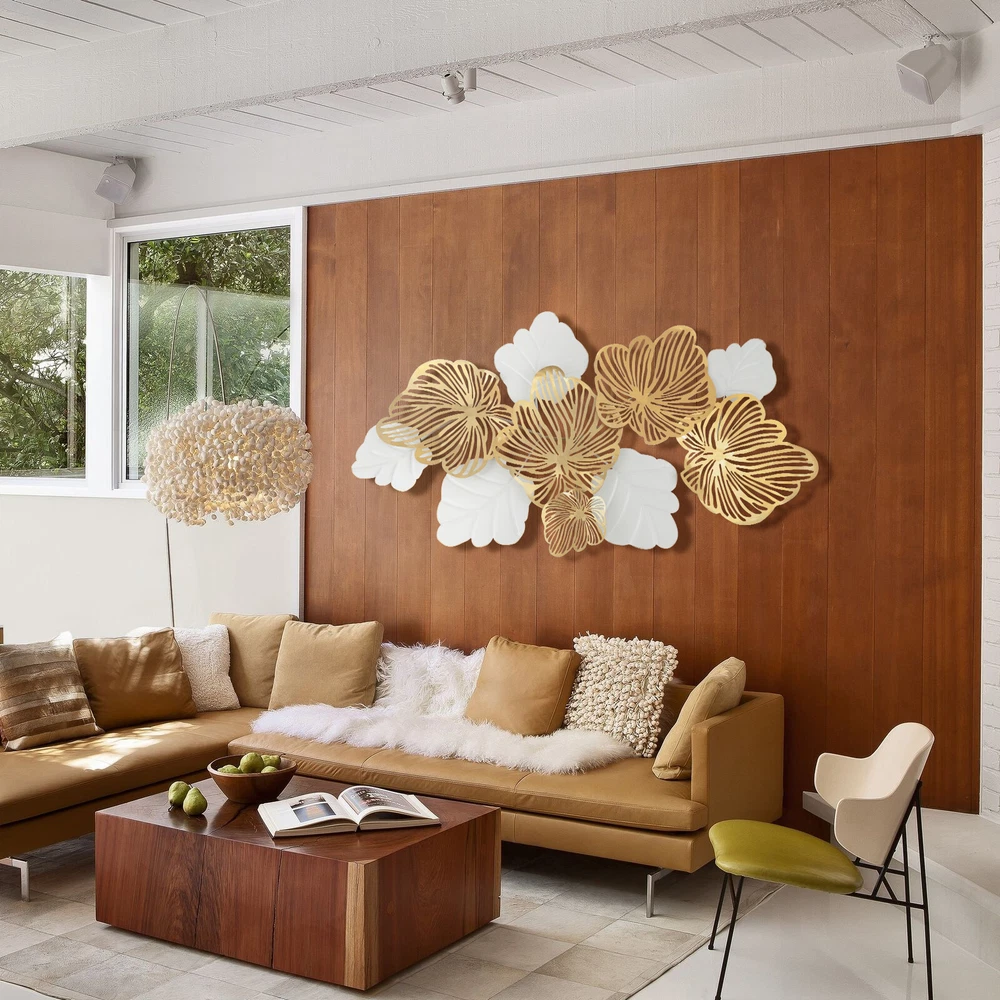 Specification Style: Scandinavian Style Color: White, Gold Material: Iron Exterior Paint Process: High-temperature Baking Paint Process: Wrought Iron Forging Gross Weight: 6kg/13.2lbs Product Size: 132*72cm/52*28inch Package Size: 135*75*6cm/53.1*29.5*2.4inch Installation Use a tape or straightedge to measure the product hook spacing, and then mark the point to be perforated with a pen. Use a 6mm/0.24in impact drill to punch holes in the marked center, the length of the drill bit is the length of the expansion cap. Hit the expansion cap. Use a hammer to hit the expansion cap into the location of the drilled hole Screwing. Use a screwdriver to screw the screws into the expansion cap, leaving a distance between the screw and the wall to hang this product. PACKAGE 1* 3D Metal W Metal Flowers +Leaves Wall Art Large White +Gold Sculpture Hanging Home Decor Wall Art Metal Flowers & Leaves Large Gold & White Sculpture Hanging Home Decor Description Everyone wants to have a beautiful and warm home. Our 3D metal wall art leaves will add some beauty to your home. It is made of hard and durable iron. The high-temperature baking paint gives it an exquisite and shiny look. The Scandinavian style makes it suitable for most home decoration styles. It is suitable for living rooms, bedrooms, hallways, galleries, cafes, restaurants, hotels, etc. Key Features Great Durability: This 3D metal wall decoration is made of hard and durable iron. It is also finished with an iron forging process, so it has a good quality with a long life span. Exquisite and Luxurious Appearance: The openwork carvings of gold flowers and white leaves give the wall decor a very luxurious and beautiful look. So it is a wonderful decoration for your room! 3D Decoration: Our 3D decoration is much more dimensional than many flat decorations. The 3D design makes the whole decoration look lifelike. Solid Structure: Each leaf of this wall decoration is welded and fixed to a metal rod . So the structure is very stable. The leaves are uneasy to deform and loose. Uneasy to Fade: This wall decoration has a high-temperature baking paint process. It stays that color for a long time. It looks new even after a long time of usage. Suitable Size: It measures 52*28inch. This size is suitable for many walls because it will not be too eye-catching and just be the finishing touch to the wall decoration. Easy to Install: This wall decoration is very simple to install. We have provided you with mounting screws. All you have to do is hang it on the wall with the screws. It is convenient and simple for you. Easy to Clean: This wall decoration is very convenient and labor-saving to clean. You can wipe the surface dust off with a towel. An Ideal Gift: This exquisite wall decoration is also a great gift. If your friends or family are having a housewarming, you can gift them this decoration. Guaranteed Customer Service: We aim to provide quality products and services. If you have any problems, please feel free to contact us. We will reply and solve the problem for you as soon as possible. Details Fine Workmanship: The golden flowers of this wall decoration are hollowed-out flowers, and the leaves are simulated leaves with real leaf textures. They make the wall decoration look very exquisite and lifelike. Smooth Surface: This surface of this decoration is finely polished and polished. So its surface is very smooth and shiny. Moreover, this decoration does not have sharp edges, so it's safer to use. Application It is suitable for living rooms, bedrooms, hallways, galleries, cafes, restaurants, hotels, etc. Specification Style: Scandinavian Style Color: White, Gold Material: Iron Exterior Paint Process: High-temperature Baking Paint Process: Wrought Iron Forging Gross Weight: 6kg/13.2lbs Product Size: 132*72cm/52*28inch Package Size: 135*75*6cm/53.1*29.5*2.4inch Installation Use a tape or straightedge to measure the product hook spacing, and then mark the point to be perforated with a pen. Use a 6mm/0.24in impact drill to punch holes in the marked center, the length of the drill bit is the length of the expansion cap. Hit the expansion cap. Use a hammer to hit the expansion cap into the location of the drilled hole Screwing. Use a screwdriver to screw the screws into the expansion cap, leaving a distance between the screw and the wall to hang this product. PACKAGE INCLUDED 1* 3D Metal Wall Art Leaves 10* Screws Notes Please be aware that the shelf should be installed on a solid wall, not on a hollow wall. Please allow the slight color difference caused by the shooting light and 1-3 cm error due to manual measurement, and make sure you do not mind before ordering. Payment Delivery details Terms of sales About us Contact us Payment We accept ebay payment 。 Fees such as import duties, taxes are not included in the item price or shipping costs. These charges are the buyer's responsibility. Delivery details Shipping: 2-9 working days to: USA Terms of sales We maintain high standards of excellence and strive for hundred percent customer satisfaction. Feedback is very important to us. We hope that you contact us immediately before you give neutral or negative feedback, so that we can address your concerns. It is impossible to address issues if we do not know about them! About us Your satis faction is our ultimate goal. We work hard to earn your trust and future business. Our certified technicians have tested each item before shipping. The unit comes with 1 year limited warranty on all manufacturing defects. a) If you receive a defective item, you may return it or ask for a discount. Please contact us within 14 days after you receive the package. b) What you returned must be intact and in its original packaging as re? u. Customer is responsible for shipping costs of the returned item. c) We will cover the cost of shipping back t with the shipping rate indicated in the registration page. We will send you a new unit or refund the full payment you paid. Thank you. Contact 