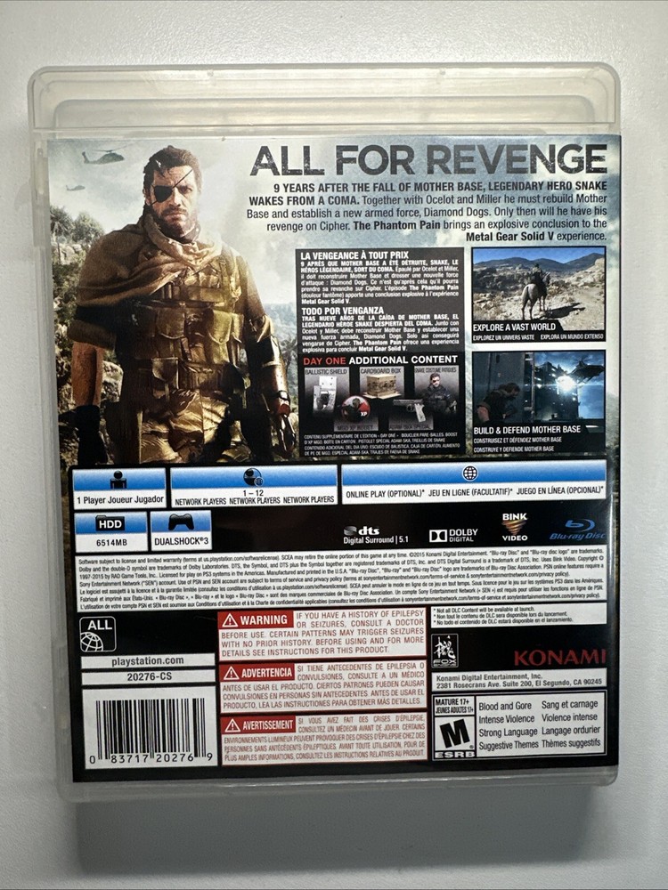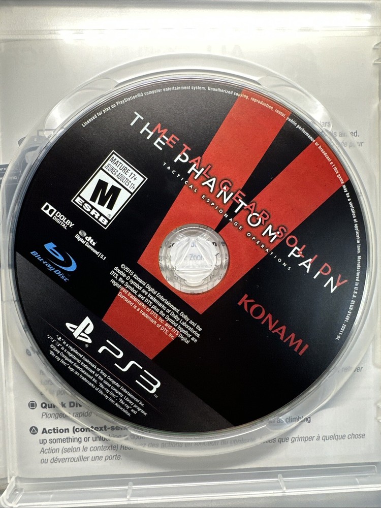 Shipping Information: Your item will be shipped via USPS Ground Advantage, securely placed in a bubble mailer with bubble wrap for added protection. Item Description: Excellent condition overall, with only light signs of use. May have minimal scuffs or surface scratches that do not affect gameplay or functionality. Includes original packaging and manuals. This Listing is for the Following: Platform: PlayStation 3 Game Name: Metal Gear Solid V: The Phantom Pain Menu: Yes Game Case: Yes Condition: Pre-Owned GAME CARTRIDGE / DISC PURCHASED WILL BE THE EXACT SAME ONE SHOWN IN THE IMAGES ANY MORE QUESTIONS? FEEL FREE TO ASK!