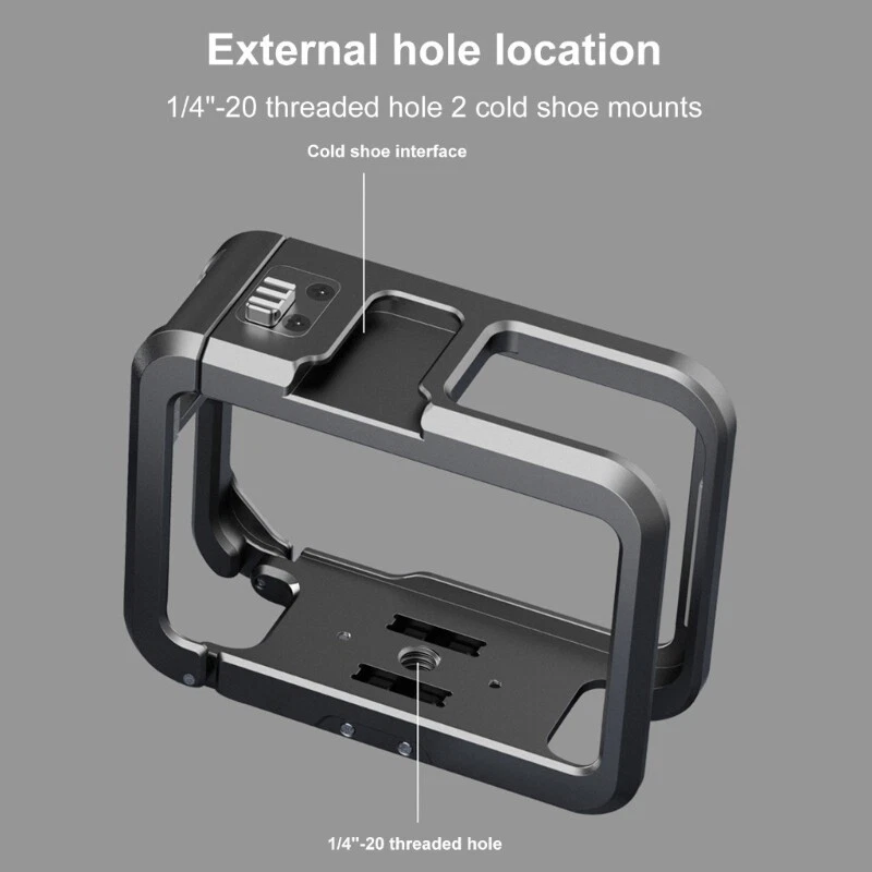 Features: Aluminium lightweighted component, essentially making the camera cage a heat sink to keep cool and extend recording time. Double Cold Shoe Mounts: Cage comes with cold shoe mounts on the top and side, for camera lighting module and microphone, LED video light. Reserved ports: not interfere with removal, charging and memory card removal For auditory adapter: the bottom bracket can be installed with original microphone adapter, the side plate can be replaced with the camera's original side plate, support recording while charging. Multiple Mounting : the bottom of the cage is with double port 4inch threaded for connection Specifications: for Action Camera 13 Camera Component:Metal Frame Size:about 7.87x6.5x3.11cm/3.09x2.56x1.22in Package Includes: 1PC Metal Frame note: Due to problemsof lighting effects, there will be tolerances in the product, please understand. Please allow 0-1cm error due to manual measurement.