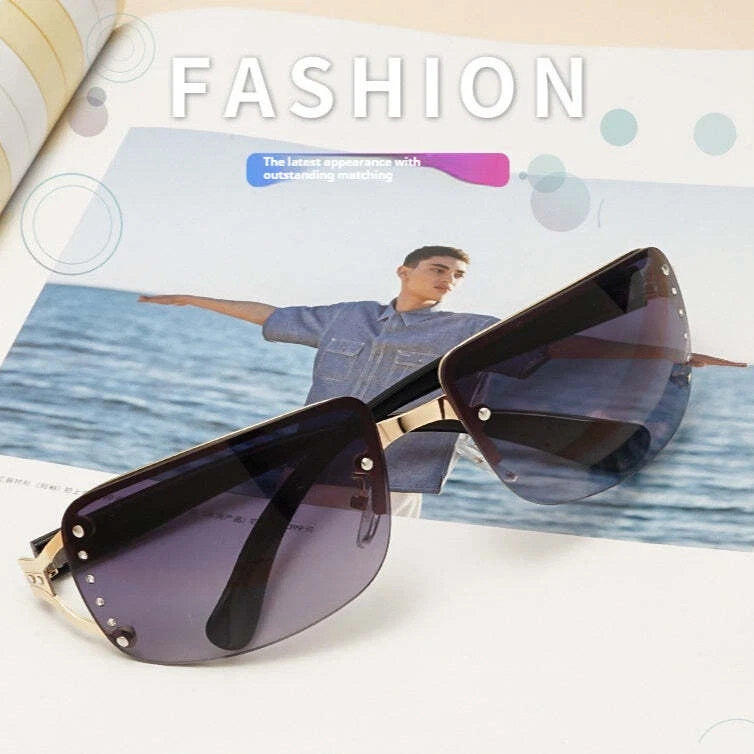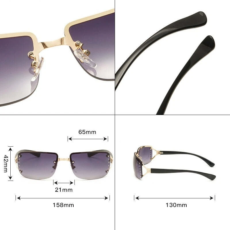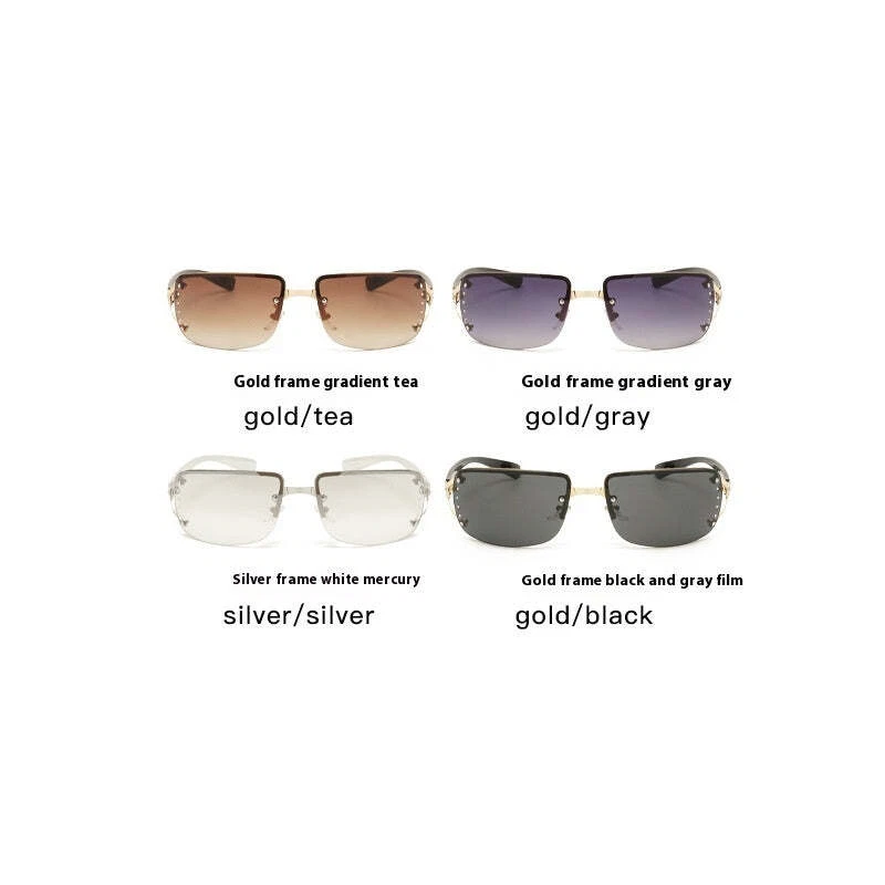 Product information: Lens color: brown Mirror frame color: Gold Transmittance classification: Class 2/Sunshade mirror Glasses structure: frameless Popular element: glasses Color: Gold frame gradient tea, Gold frame gradient gray, Silver frame white mercury, Gold frame black gray flakes Style: Business, Versatile, Elegant, Minimalist, Casual, Sporty, Fashionable OL, Minimalist, European and American, Light Luxury, Chic, High End Lens material: AC Frame Material: Metal Glasses Style: Box Style Category: Fashion Commuter Mirror frame material: plastic+metal Popular element classification: Shape/Pattern Packing list: Sun Glasses*1 Product Image: