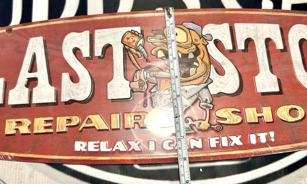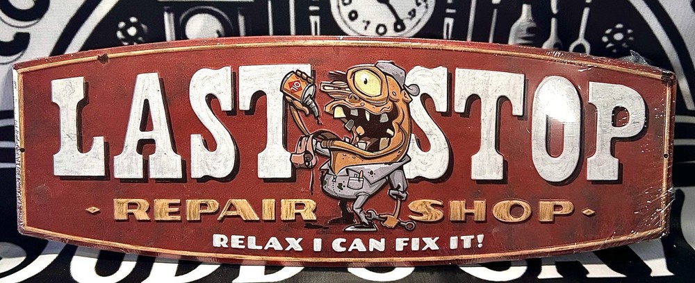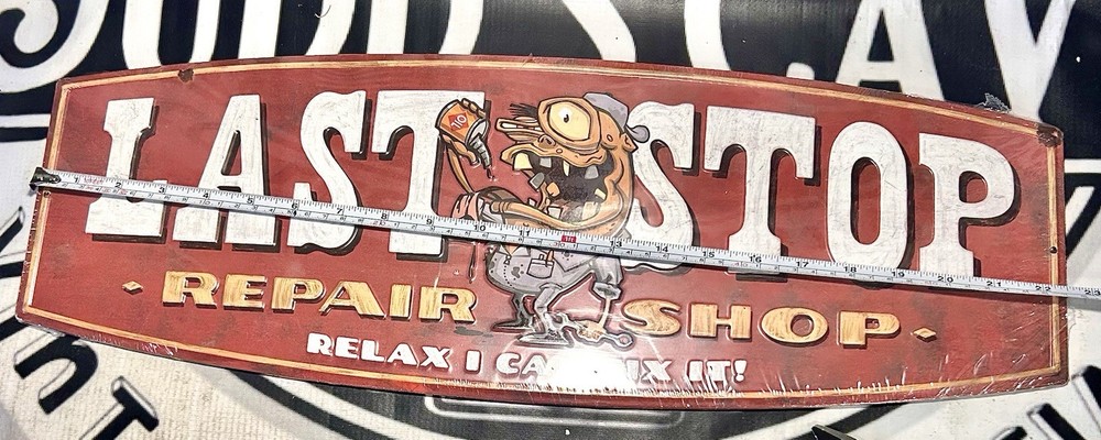 😮 AMAZING PRICE 🤯 *New in packaging* (New old stock). The Metal Sign 'Last Stop Repair Shop Relax I Can Fix It' by Open Road is a unique and nostalgic piece perfect for a garage or mancave. Measuring 23 x 8 inches, this sign features a retro design with a theme of cars, vehicles, and Route 66 advertising. Made of durable metal, it adds a touch of whimsy and character to any space, making it a standout decorative collectible for car enthusiasts and collectors alike. 🚨If you want to BUY NOW, send a fair offer🚨 💨 *FAST SHIPPING*💨 Check out my profile for other Collectibles, Antiques, Vintage, & Essentials.