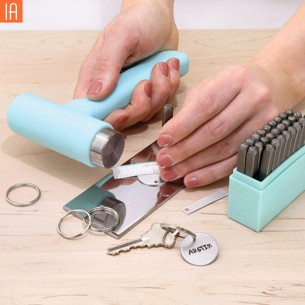 This budget-friendly kit includes the essential tools needed to start hand stamping metal jewelry and keepsakes. The stamps and tools are all specifically chosen to ensure an easy and successful introductory experience. The Soft Steel Hammer is designed to leave deep and even impressions, while the conveniently sized stamping block provides a solid stamping surface. The basic 3mm Bridgette uppercase letter stamps have a whimsical, fun, hand-written style that is great for beginners. These stamps are engineered from hardened steel and rated to endure stamping on soft metals*. The kit also includes 4 keychain projects, a practice blank, stamp guides, and a stamp enamel sample. Includes: ◉ Soft Steel Hammer - Produces deep and even impressions ◉ Stamping block + Rubber Pad - Provides a solid stamping surface ◉ (8) Straight Stamp Guides - Helps evenly space out letters and align stamped impressions in a straight line ◉ Stamp Enamel Sample - Darkens stamped impressions ◉ Bridgette Basic Letter Stamps, Uppercase, 3mm - Perfect, economical option when learning how-to hand stamp. Forged in carbon tool steel and hardened to last. Lightly coated with oil to prevent rust. Contain no character marking to assist with identification or orientation. ◉ (2) Circle, Aluminum Blanks ◉ (2) Rectangle, Aluminum Blanks ◉ (4) Spilt Rings ◉ Practice Blank 🔨 This budget-friendly kit includes the essential tools needed to start hand stamping metal jewelry and keepsakes. The stamps and tools are all specifically chosen to ensure an easy and successful introductory experience. 🔨 The Soft Steel Hammer is designed to leave deep and even impressions, while the conveniently sized stamping block provides a solid stamping surface. 🔨 Bridgette Basic Letter Stamps, Uppercase, 3mm - Perfect, economical option when learning how-to hand stamp. Forged in carbon tool steel and hardened to last. Lightly coated with oil to prevent rust. Contain no character marking to assist with identification or orientation! 🔨 The kit also includes 4 keychain projects, a practice blank, stamp guides, and a stamp enamel sample. 🔨 The stamps and tools are all specifically chosen to ensure an easy and successful introductory experience.