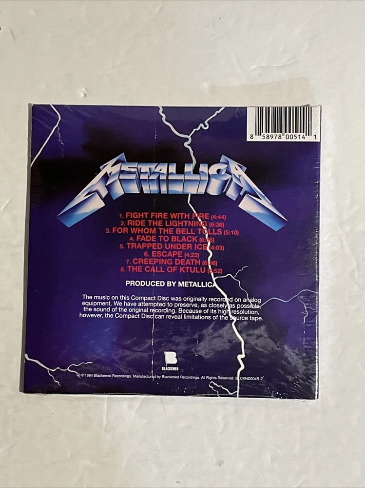 This Metallica Ride The Lightning album is a must-have for any rock music fan. With its heavy metal and thrash & speed style, this remastered edition is sure to impress. The CD format comes in a cardboard sleeve and is sealed, making it a great addition to any collection. The album was released in 2016 under the Bkrg and Blackened Recordings record labels and features the iconic Metallica artist. Its title, Ride the Lightning, is a classic and timeless addition to any music library. Don't miss out on this opportunity to own a piece of rock history. Free shipping