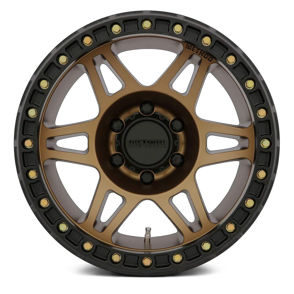 Home View All Listings Shipping & Returns Feedback About Us Contact Us Method Race Wheels MR10679050944B Wheel Specifications Condition: New UPC: 191682009631 SKU: 12066552 Brand: Method Race Wheels Manufacturer Part #: MR10679050944B Product Description The Method Race Wheels 106 beadlock wheels are the perfect addition for those rock crawling, desert pre-running or anywhere your off-road vehicle can possibly go. Solid A356 aluminum with T6 heat treatment construction Details: Tough 6 windowed point design with debossed METHOD logos Forged 6061 aluminum V.3 beadlock ring is 53 percent thicker and reduces deflection Reinforced inner lip provides extreme strength and durability Extra wide bead seat is 17 percent bigger to accommodate largest tires Grade 8 zinc-plated beadlock hardware kit included Redundant sets of threaded beadlock hardware holes machined into wheel Recessed hardware has 360-degree protection to prevent bolt head shearing Bolt-on center cap with embossed METHOD logo Hub centric fitments for common applications Super strong 3600 lbs. load rating Specs Wheel Size: 17x9 Model: Beadlock MR106BRZ Color: Method Bronze Offset: -44 Bolt Pattern: 5 On 127 Bolt Circle 1: 127 Bore: 71.5 Lip Size: 0 Wheel Diameter: 17 Width: 9 Weight: 39.5 Load Rating: 3600 BSM: 3.5 Material: A356 Aluminum Structure: 1-Piece Lug Type: Conical Exposed Lugs: Yes Lug Count: 5 Replacement Cap: CP-T077L116-B Segment: Off-Road, Truck Warranty: Lifetime Structural Warranty Sold As: Each Feature 1 One-piece 356 aluminum construction w/ T6 heat treatment Feature 2 V.3 ring 53% thicker than original 101 ring greatly reduces deflection Feature 3 Recessed hardware has 360 degree protection to prevent bolt head shearing Feature 4 17% wider bead seat to accommodate larger tires Feature 5 Includes American made Grade 8 zinc-plated hardware kit Wheel Diameter (in) 17 in. Wheel Width (in) 9.00 in. Bolt Pattern 5 X 5 Bolt Hole Count 5 Payment We accept the following forms of payment. Sales tax will be automatically added by eBay if it applies Please see the "Shipping and Payment" tab or the top of the listing for shipping costs. We ship within 2 business day(s). We do not ship to APO/FPO or Post Office box addresses on eBay. We use UPS and Fedex for most orders. We are unable to guarantee a specific carrier. In-stock items can ship from multiple warehouses. To avoid delays, we ship the order from your nearest stocking warehouse. This means orders may arrive in multiple boxes or at different times. We do not ship to Alaska, Hawaii, Puerto Rico or Guam on eBay. Standard shipping is 1-5 business day delivery on most items. Additional delivery days may apply in some instances, such as hazardous items, mounted tires and wheels, oversized items, truck freight items, select zip codes, Global Shipping Program and remote delivery areas. Shipping Please see the "Shipping and Payment" tab or the top of the listing for shipping costs. We ship within 2 business day(s). We do not ship to APO/FPO or Post Office box addresses on eBay. We use UPS and Fedex for most orders. We are unable to guarantee a specific carrier. In-stock items can ship from multiple warehouses. To avoid delays, we ship the order from your nearest stocking warehouse. This means orders may arrive in multiple boxes or at different times. We do not ship to Alaska, Hawaii, Puerto Rico or Guam on eBay. Standard shipping is 1-5 business day delivery on most items. Additional delivery days may apply in some instances, such as hazardous items, mounted tires and wheels, oversized items, truck freight items, select zip codes, Global Shipping Program and remote delivery areas. Returns Return Policy: We accept returns of new and unused merchandise if a return is requested within 30 days of shipment receipt. If the return is for a part that was used or damaged after it was received, or because of an error on the part of the customer, a restocking fee of 15-30% may apply. If the item(s) in question are being returned for a reason that is not our fault, the customer is responsible for return shipping costs as well as initial shipping costs on the order. Return Process: Please use the eBay returns portal to create a return. We respond within 24 hours and will provide you with all the simple information to send back your items. We pride ourselves in a simple return process FREE RETURN SHIPPING, 100% MONEY BACK. MAKE SURE YOU CHOOSE: BOUGHT BY MISTAKE AS THE RETURN REASON Warranty Claims: In the event that you have an issue with a product that falls under the manufacturer's warranty we can assist you in getting in contact with the manufacturer. Please contact us by phone or email so we can provide assistance. Please note that in cases of items being replaced under warranty the customer may be responsible for the shipping cost of the return shipment and/or the replacement order. Lost Items: If you find your shipment is lost, stolen or missing, you must go through our legally enforced return process. Please contact our team and notify them the item is lost, stolen or missing. You will be asked to sign a legal affidavit and we will then process the claim. Per legal policy, we must wait 7-10 business days before we can make a decision on the order status to await the items arrival. We will not process any lost, stolen or missing claims without a signed legal affidavit proving the item(s) were in fact lost, stolen or missing. If your item is found within the claim period, you will not be awarded the claim as your items have arrived. Any falsification of documentation can lead to further legal action.