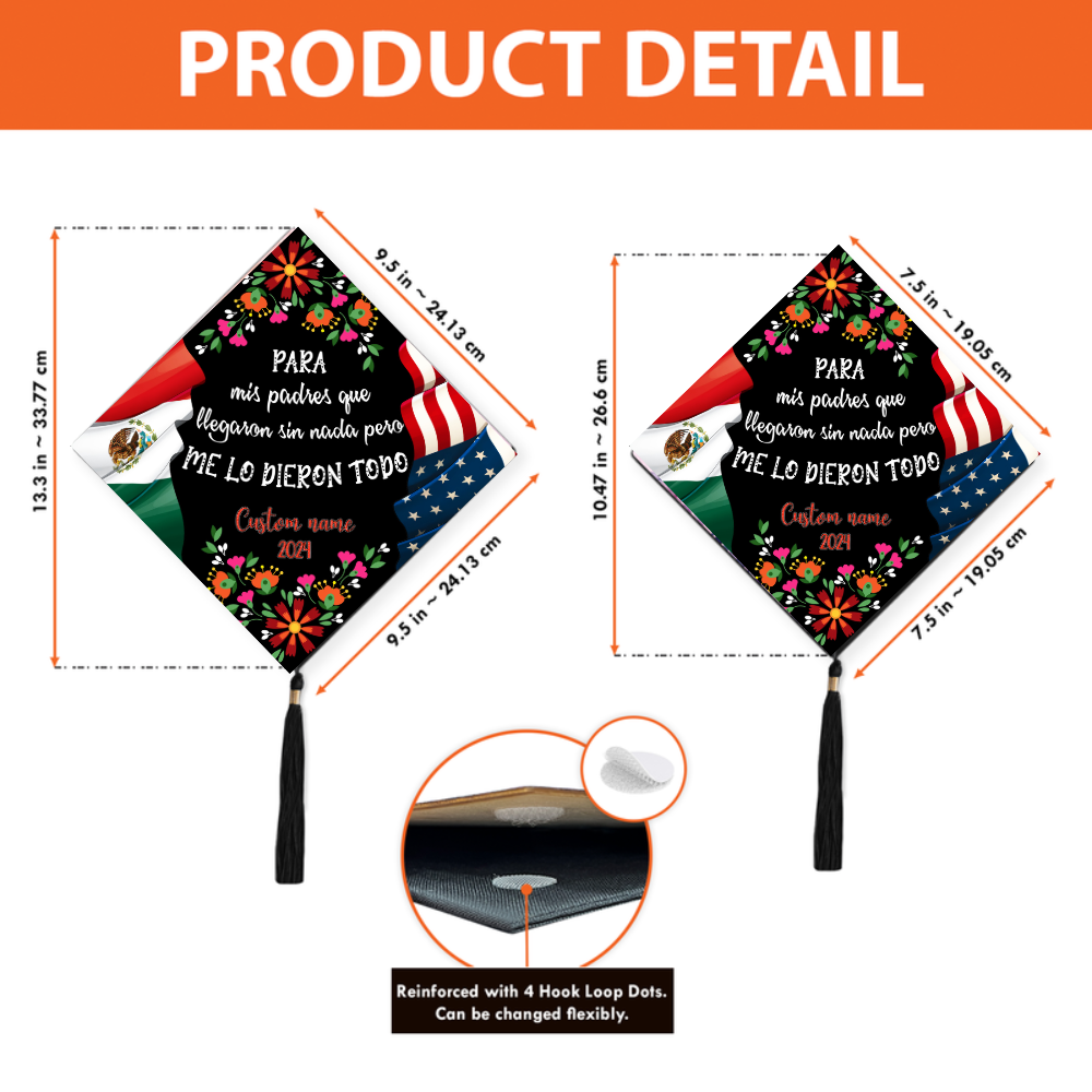Celebrate Your Culture and Achievement with a Customized Mexico Graduation Cap Topper 2025 Make your graduation day unforgettable with our Mexico-themed Graduation Cap Topper – a beautiful and meaningful way to showcase your pride, personality, and journey. Designed especially for Latina grads , this custom topper adds a personal and cultural touch to your special moment. 🎓 High-Quality Materials Choose from durable acrylic (1mm) , premium wood (2mm) , or thick paper , ensuring your topper stays vibrant and sturdy throughout the ceremony. 🌟 Personalized Design Each topper is fully customizable and may feature glitter, rhinestones, metallic accents , and more. Add your favorite quotes, school logos, career icons , or even Mexican-inspired themes to represent your story, goals, and identity. 🌺 Stand Out with Pride Perfect for Latina graduates and anyone proud of their Mexican heritage , this cap decoration makes you shine during commencement and stand out from the crowd in a bold, festive way. 🎁 Meaningful Keepsake More than just decoration, this topper becomes a lasting memento of your hard work and success—a gift to yourself or a thoughtful present for the graduate in your life.