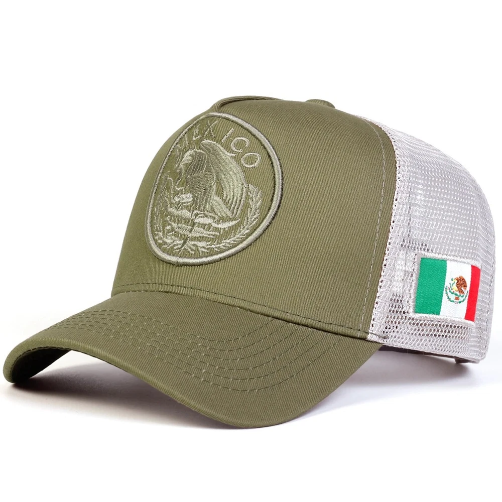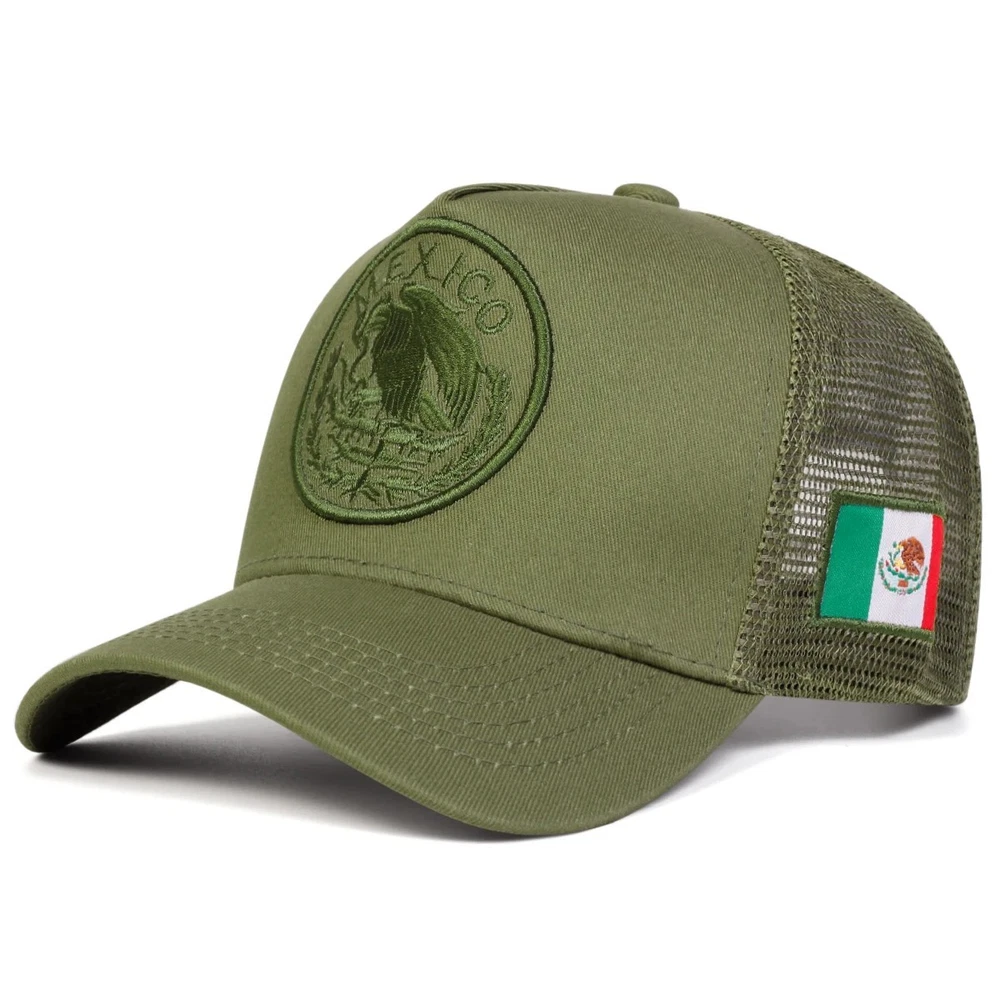 Show your pride in style with this premium Mexico Trucker Hat! This high-quality mesh snapback cap features a detailed embroidered patch of the Mexican coat of arms on the front and a vibrant Mexican flag on the side. Designed for comfort and durability, it’s perfect for everyday wear, outdoor activities, or representing your roots with pride. Features: ✔ Embroidered Mexico emblem patch ✔ Mexican flag patch on mesh side panel ✔ Breathable mesh back for ventilation ✔ Adjustable snapback closure – one size fits most ✔ Unisex design – perfect for men and women ✔ Great for casual, streetwear, or patriotic outfits Available Colors: Olive Green Black Army Green with White Mesh Add a bold statement to your look and celebrate your heritage with this stylish and versatile trucker hat. 🇲🇽