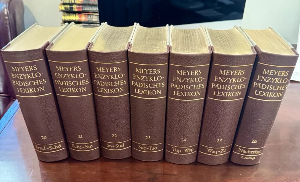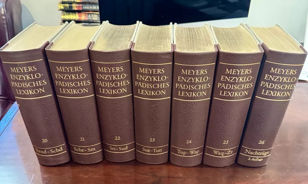 This limited edition set of Meyers Konversations-Lexikon Books 1-26 is a must-have for any book collector or enthusiast. The hardcover binding and original printing from 1972-1984 make this a rare find for those interested in the history of book printing. The set includes books on various topics and genres, all in the German language. The books are from the Meyers enzyklopädische Lexikon, known for its comprehensive and detailed information on a wide range of subjects. This particular set is a valuable addition to any collection and is sure to impress anyone interested in the history of books or the evolution of language.